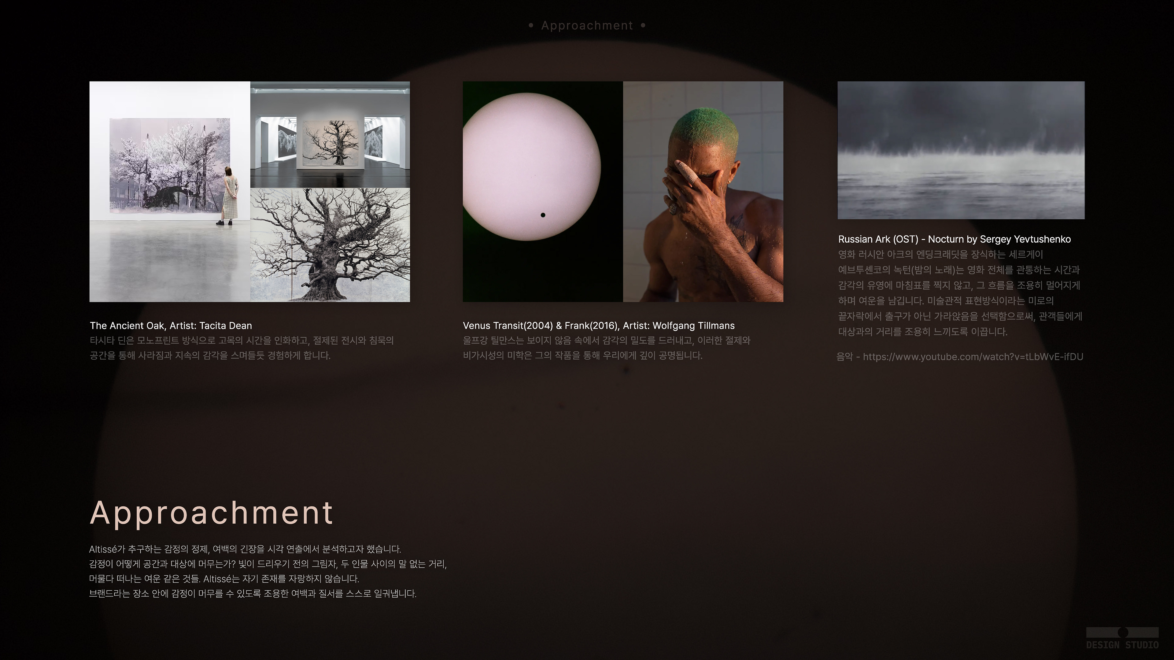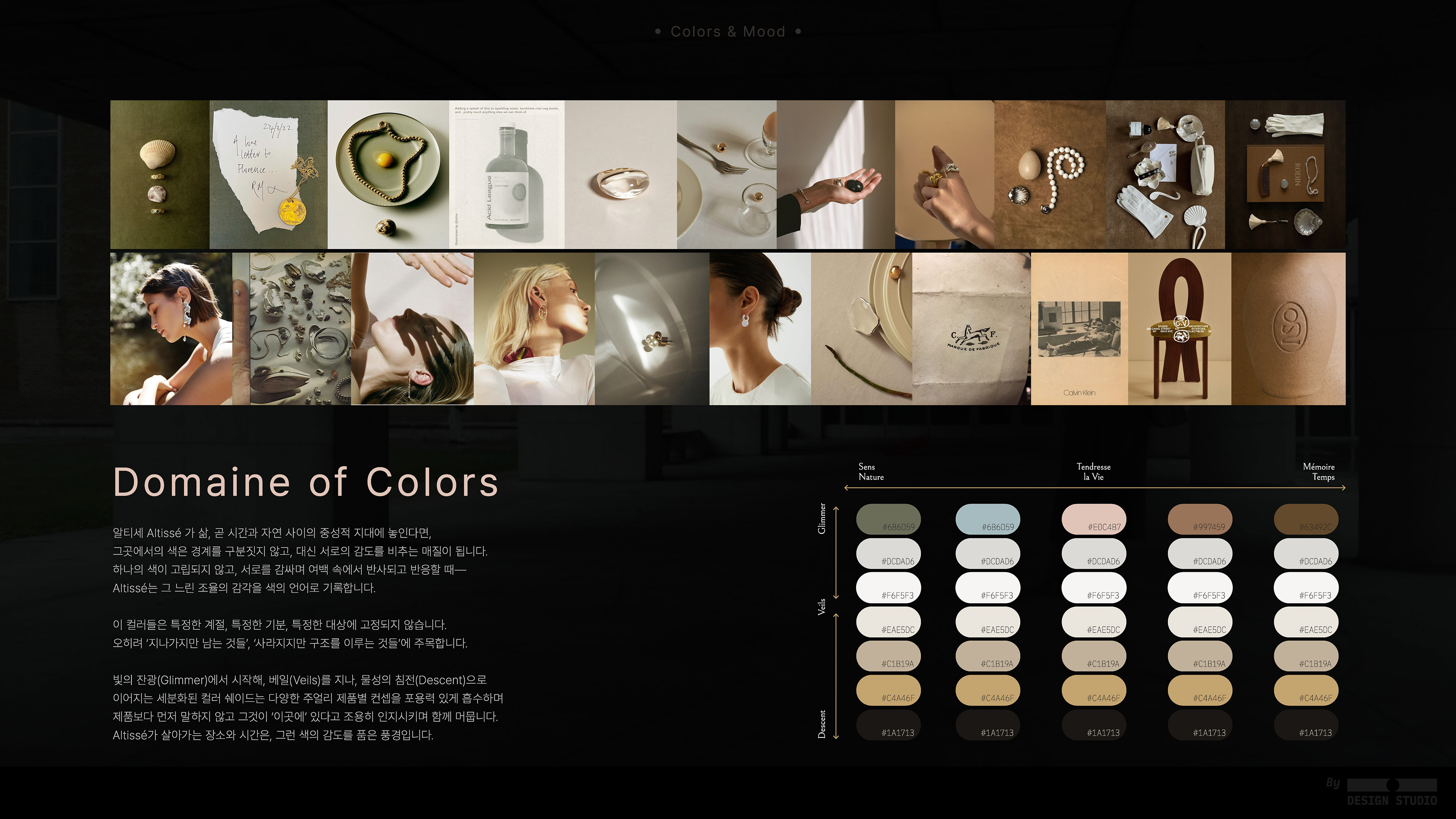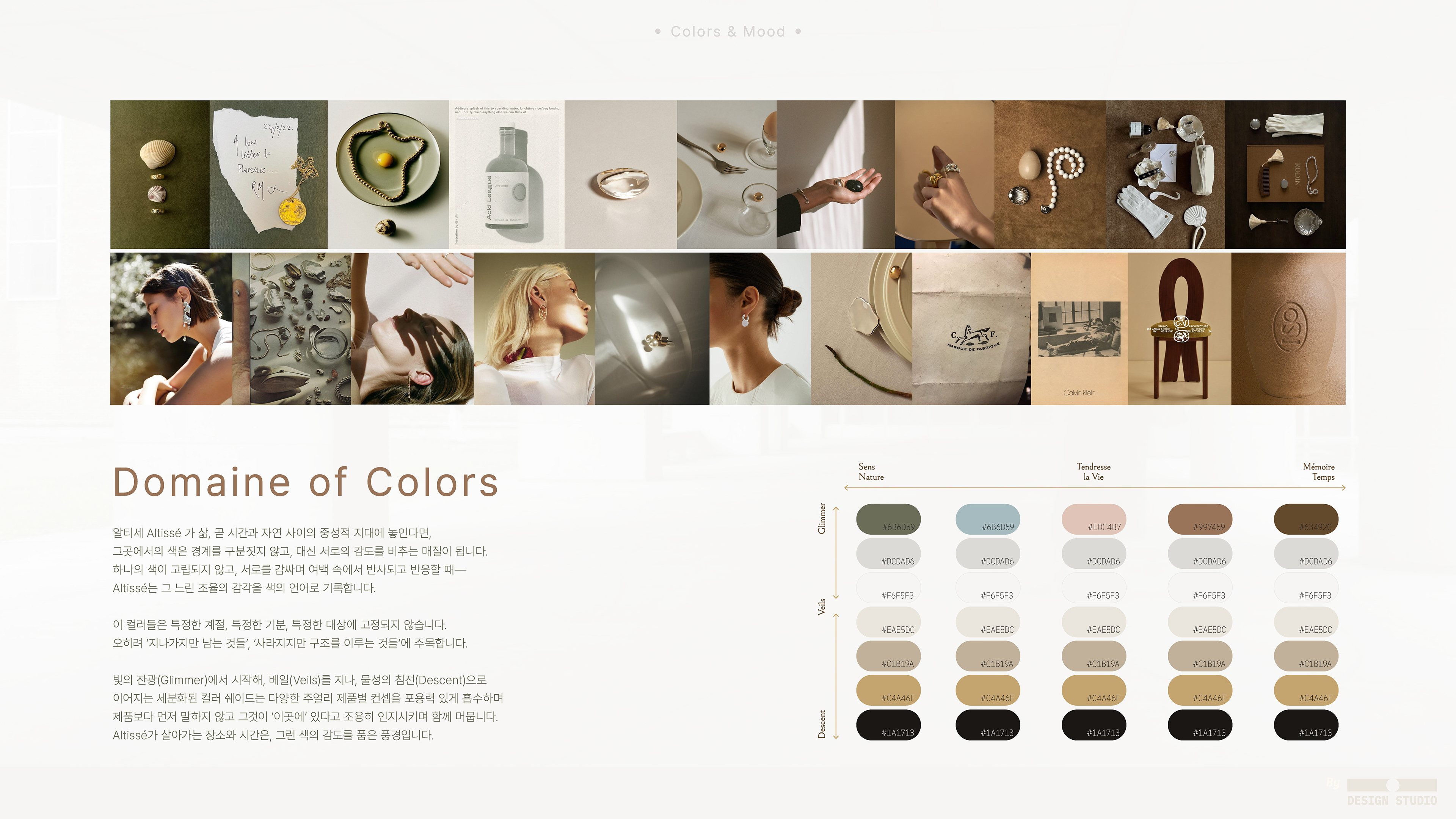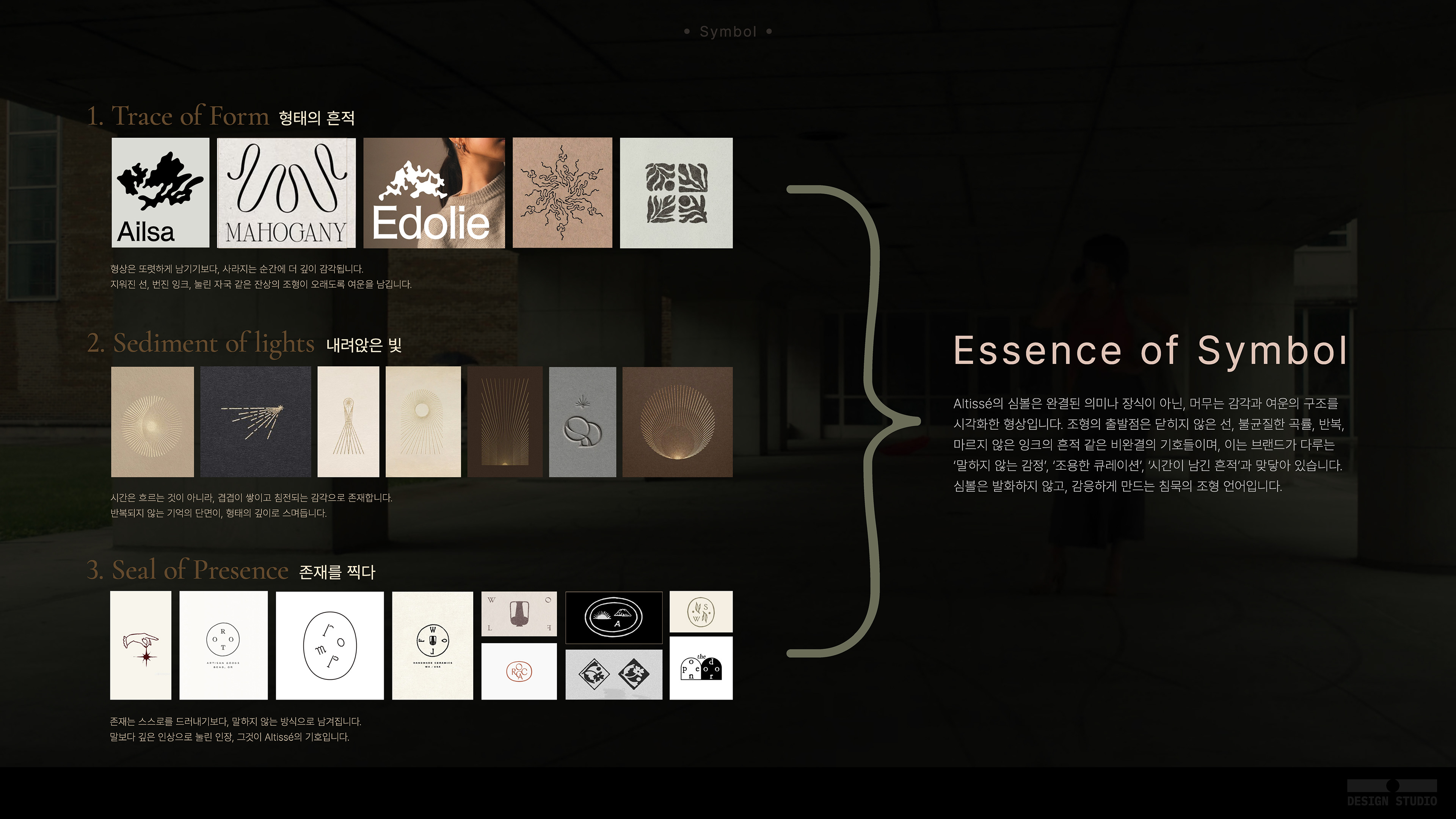 프라이빗 주얼리 브랜드 알티세의 로고 디자인을 위한 디자인 어프로치 문서를 작성하여 소통하였습니다.