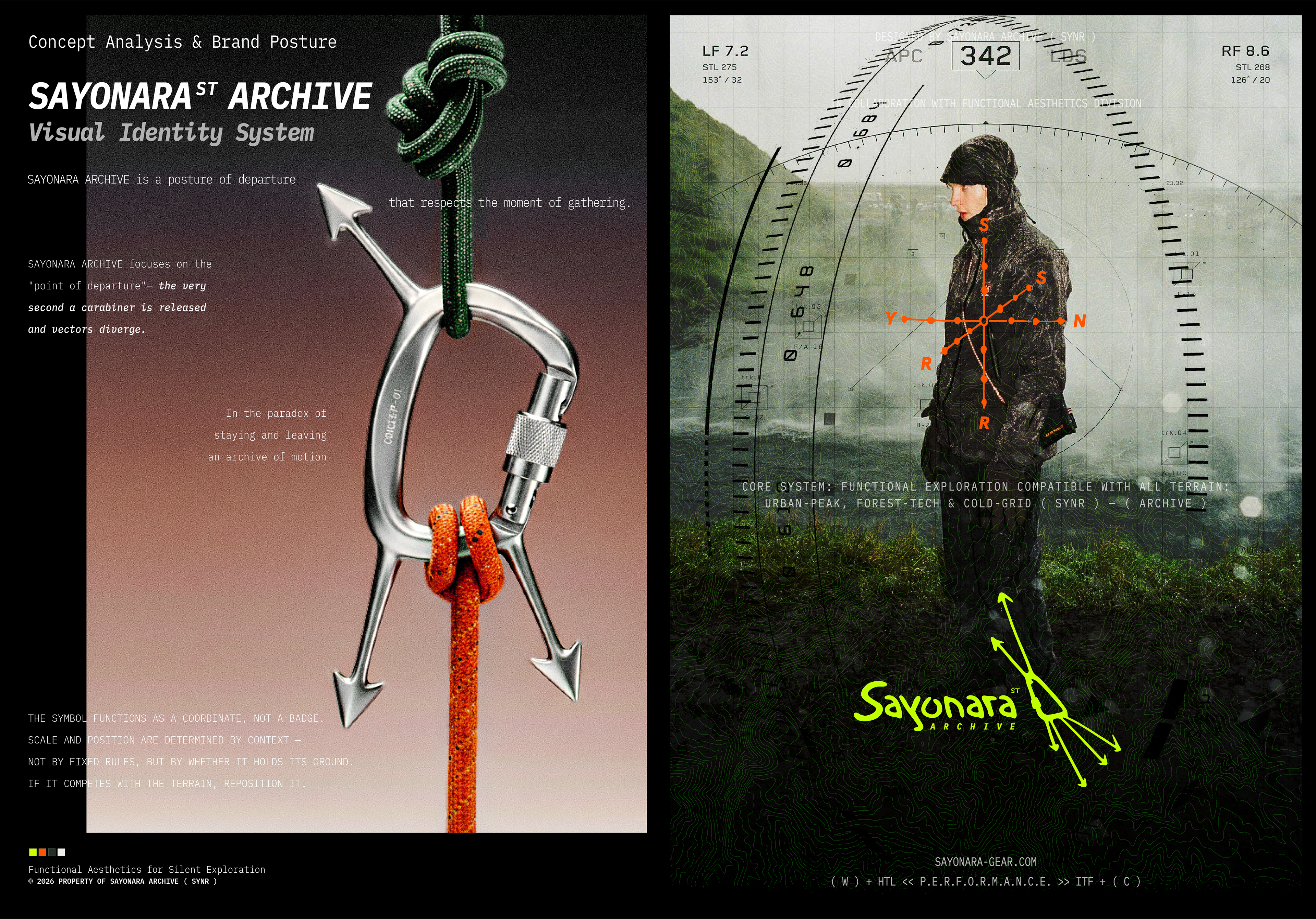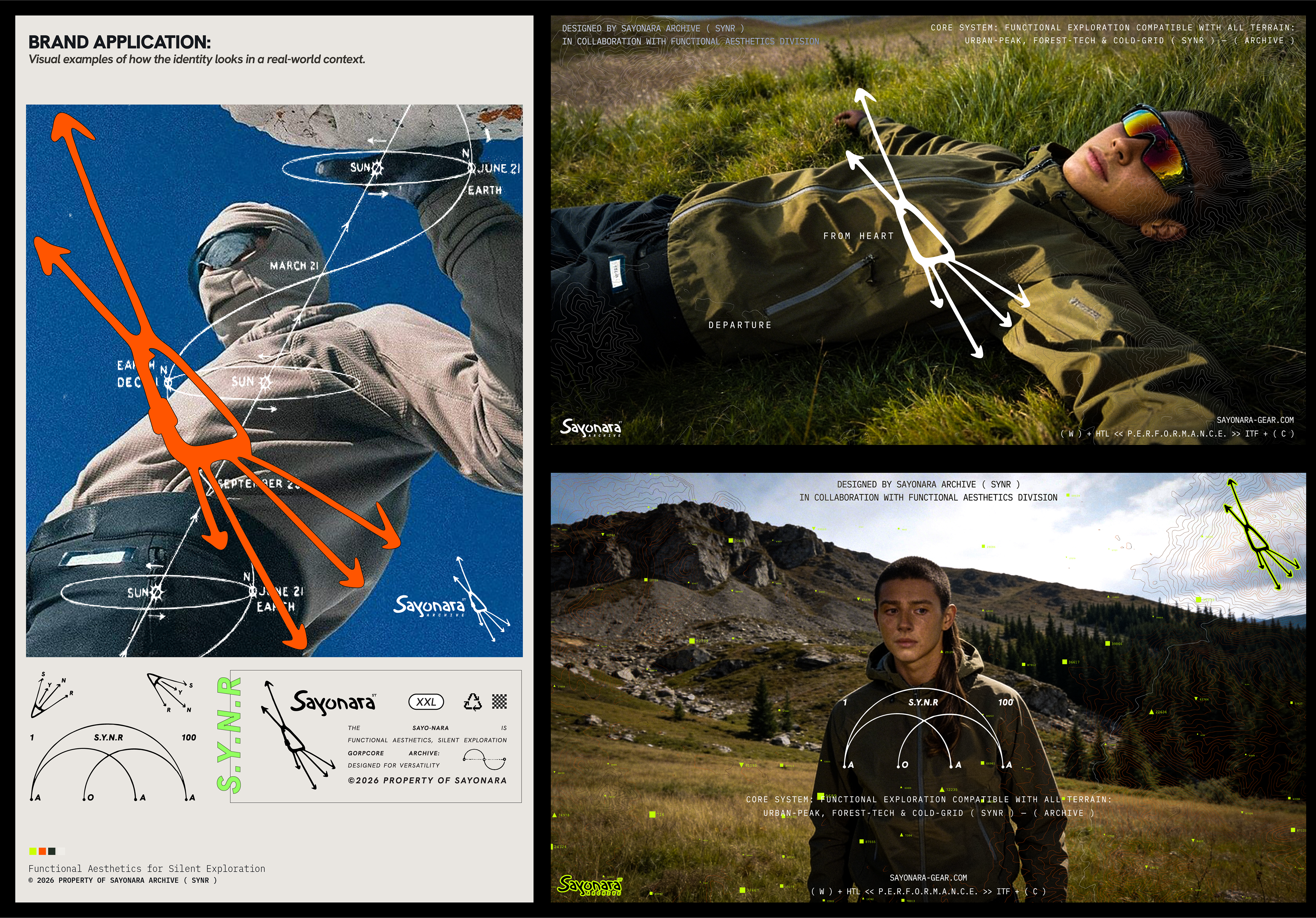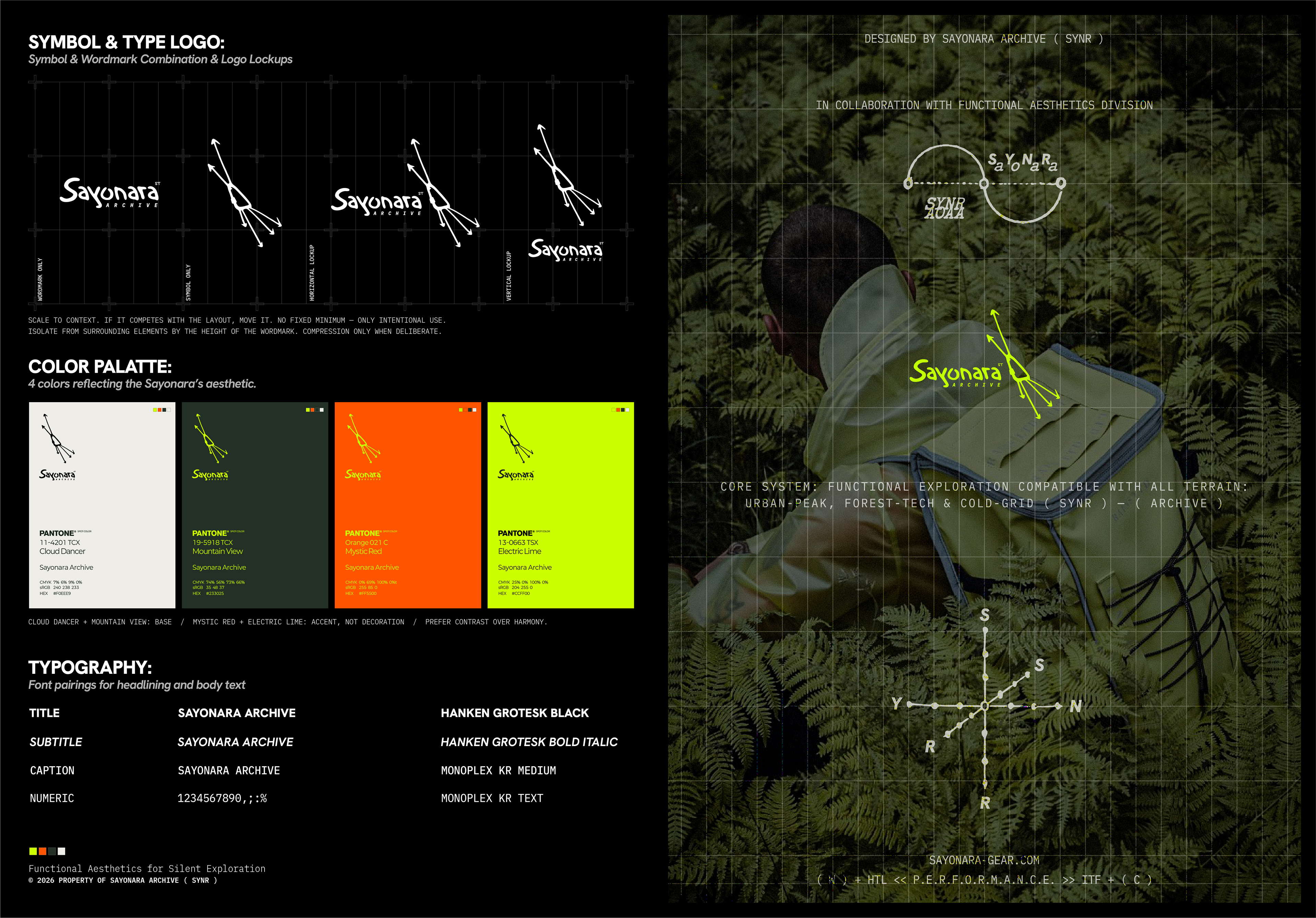 #BrandIdentity #VisualIdentity #Gorpcore #LogoDesign #OutdoorBrand #Typography #SayonaraArchive #SYNR #FunctionalAesthetics
