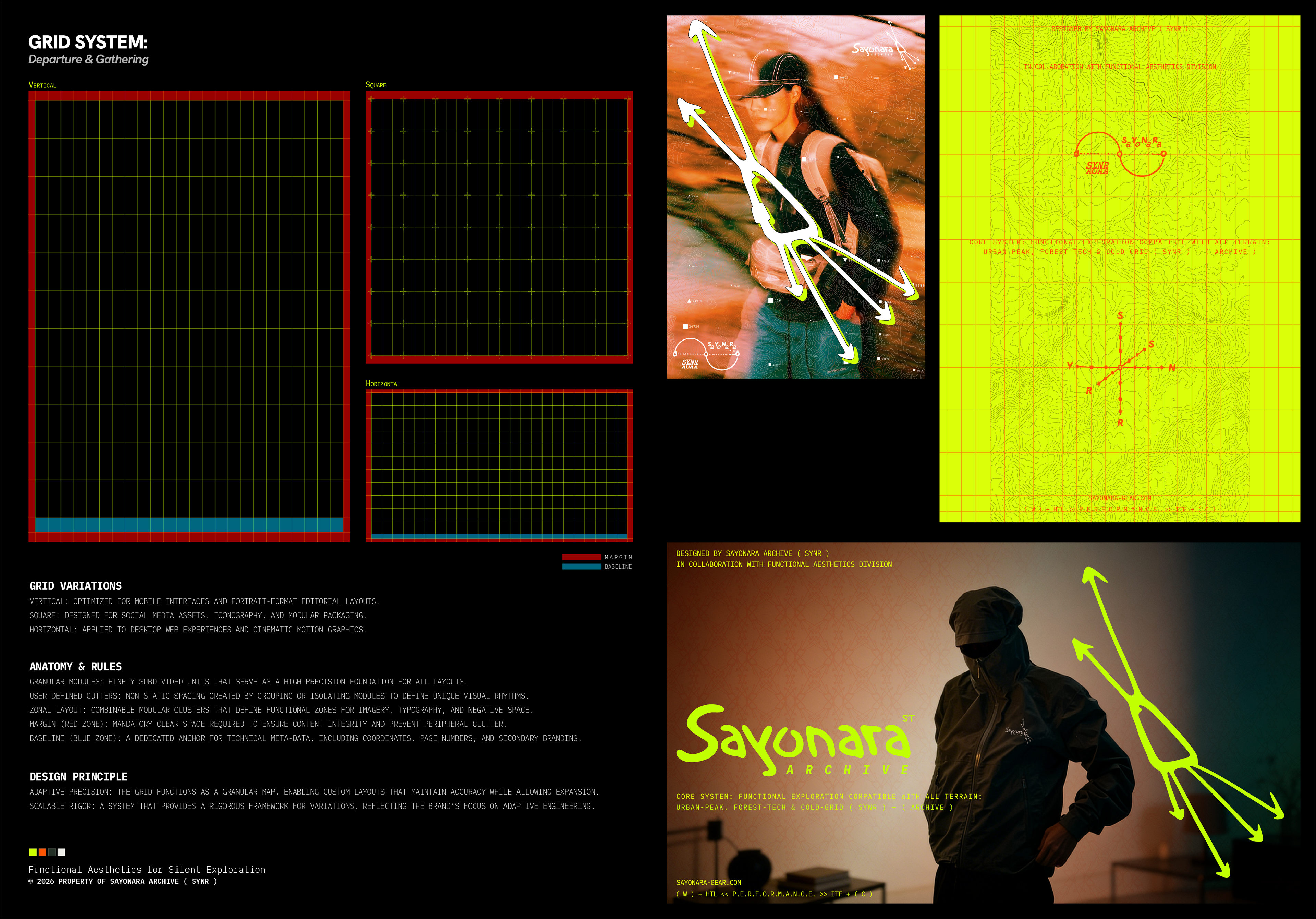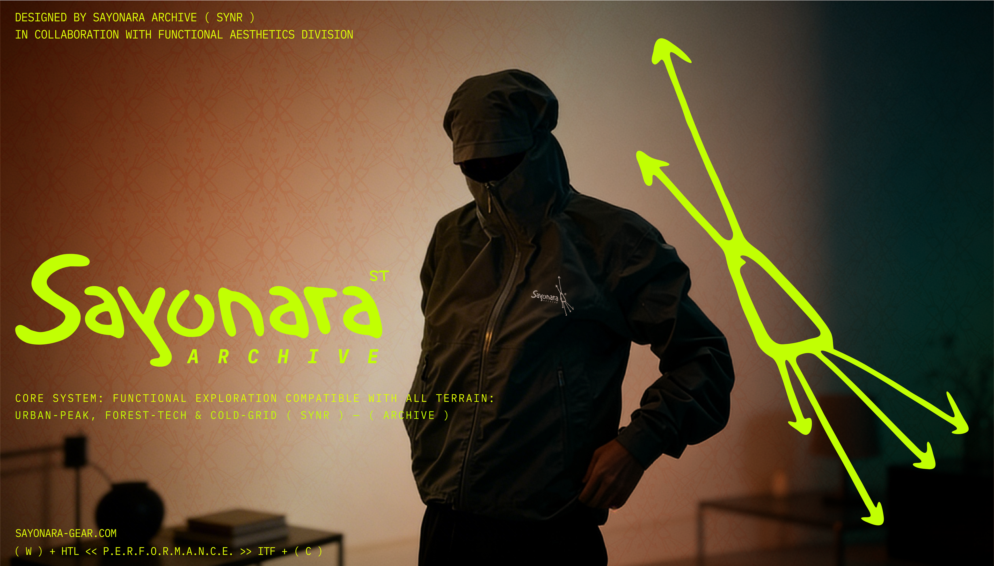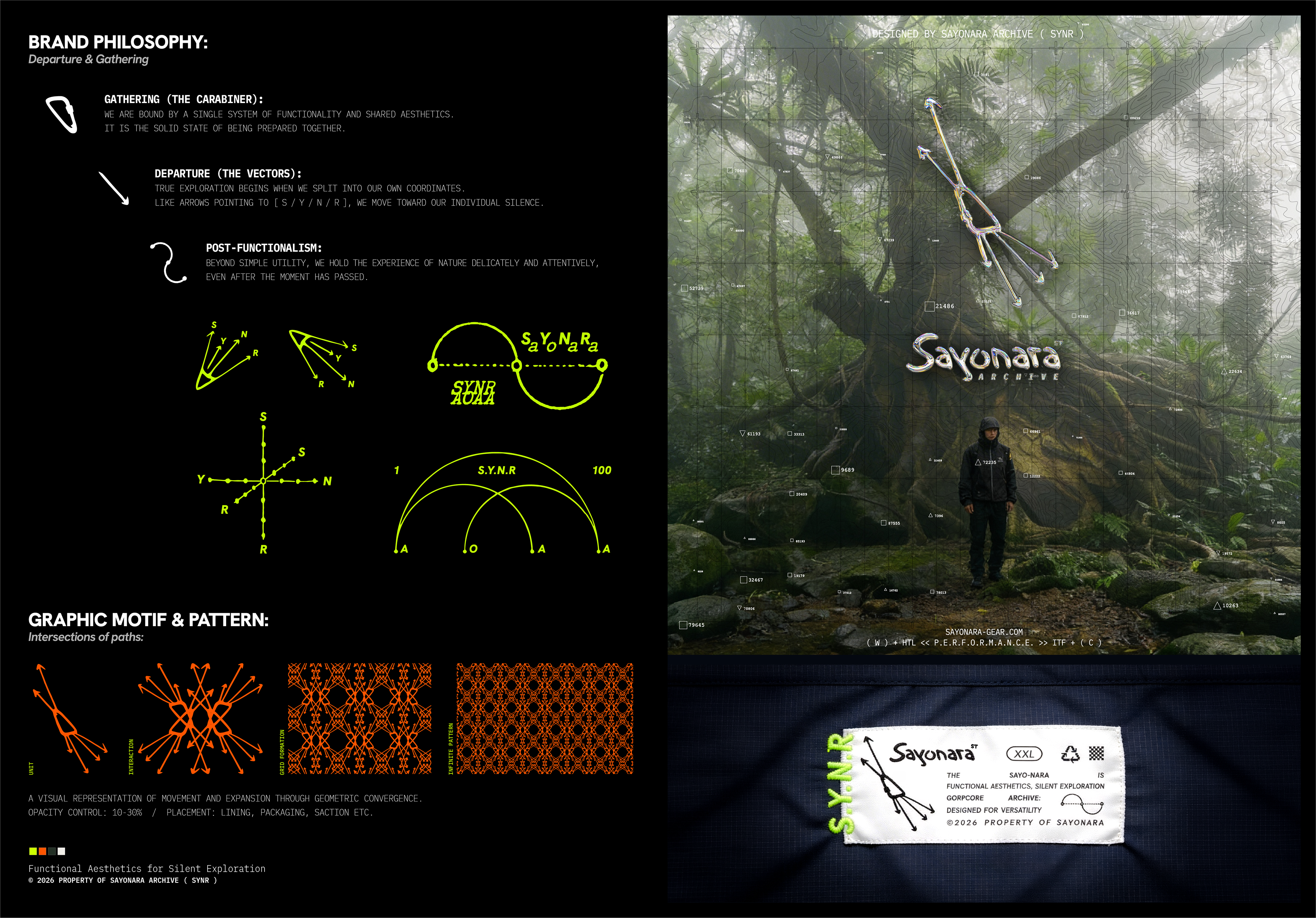SAYONARA ARCHIVE is a gorpcore-rooted outdoor brand built on the philosophy of departure and gathering.