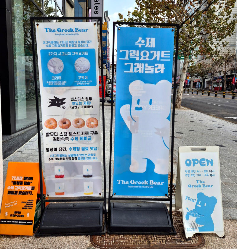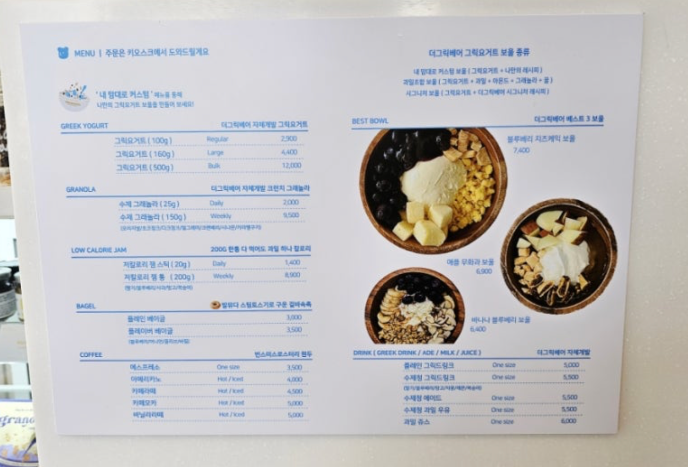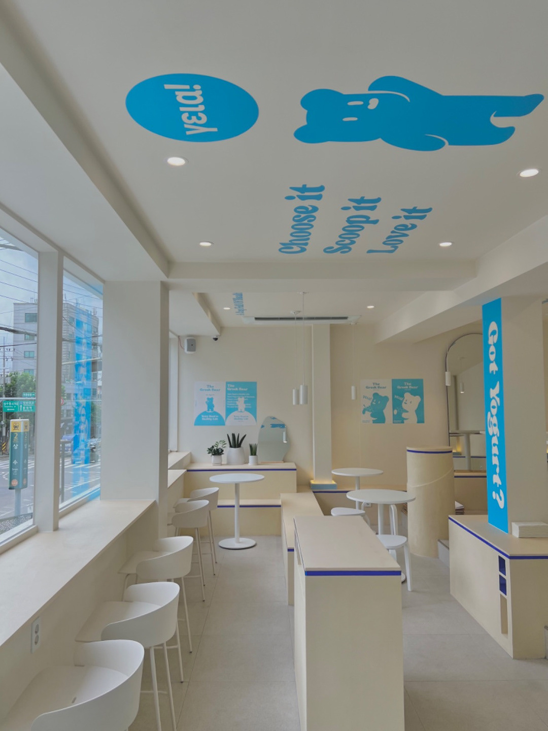 그릭요거트 전문 카페인 더그릭베어의 브랜드아이덴티티, 패키지, 상수역 본점 공간 그래픽 디자인을 진행하였습니다.