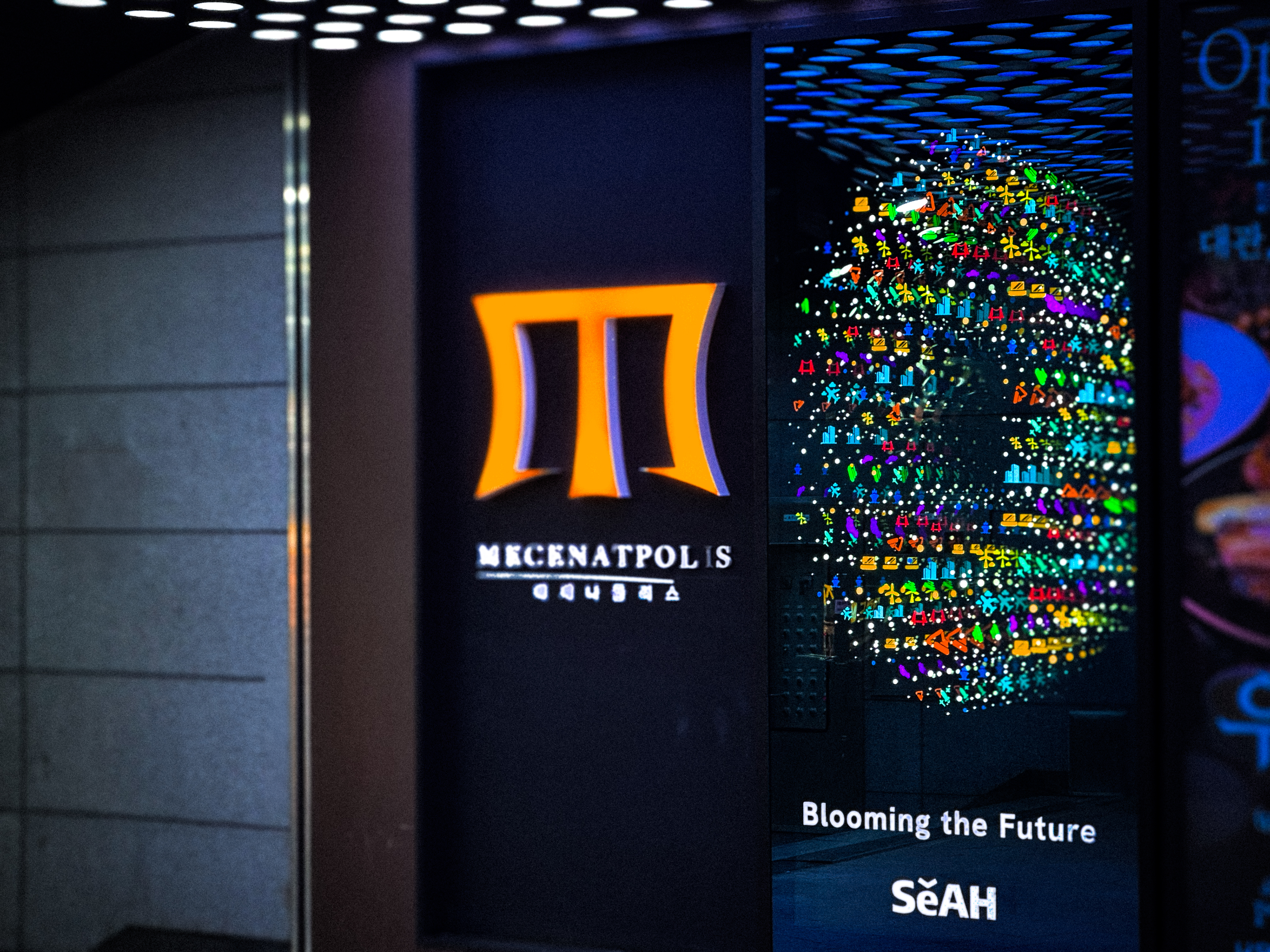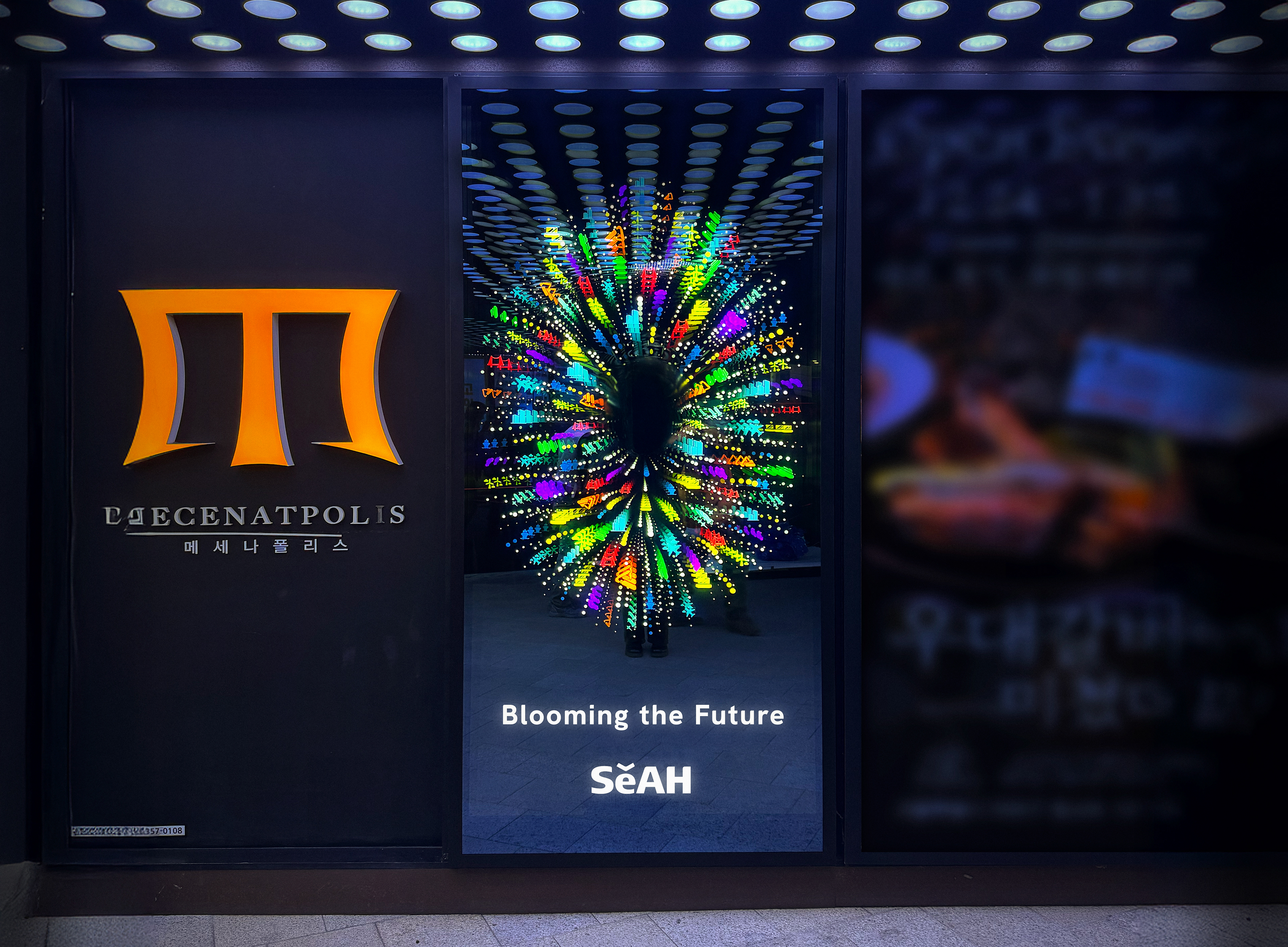 합정역 9번 출구 메세나폴리스 입구에 세아그룹의 미래 비전을 시각화한 인피니티미러를 설치했습니다.