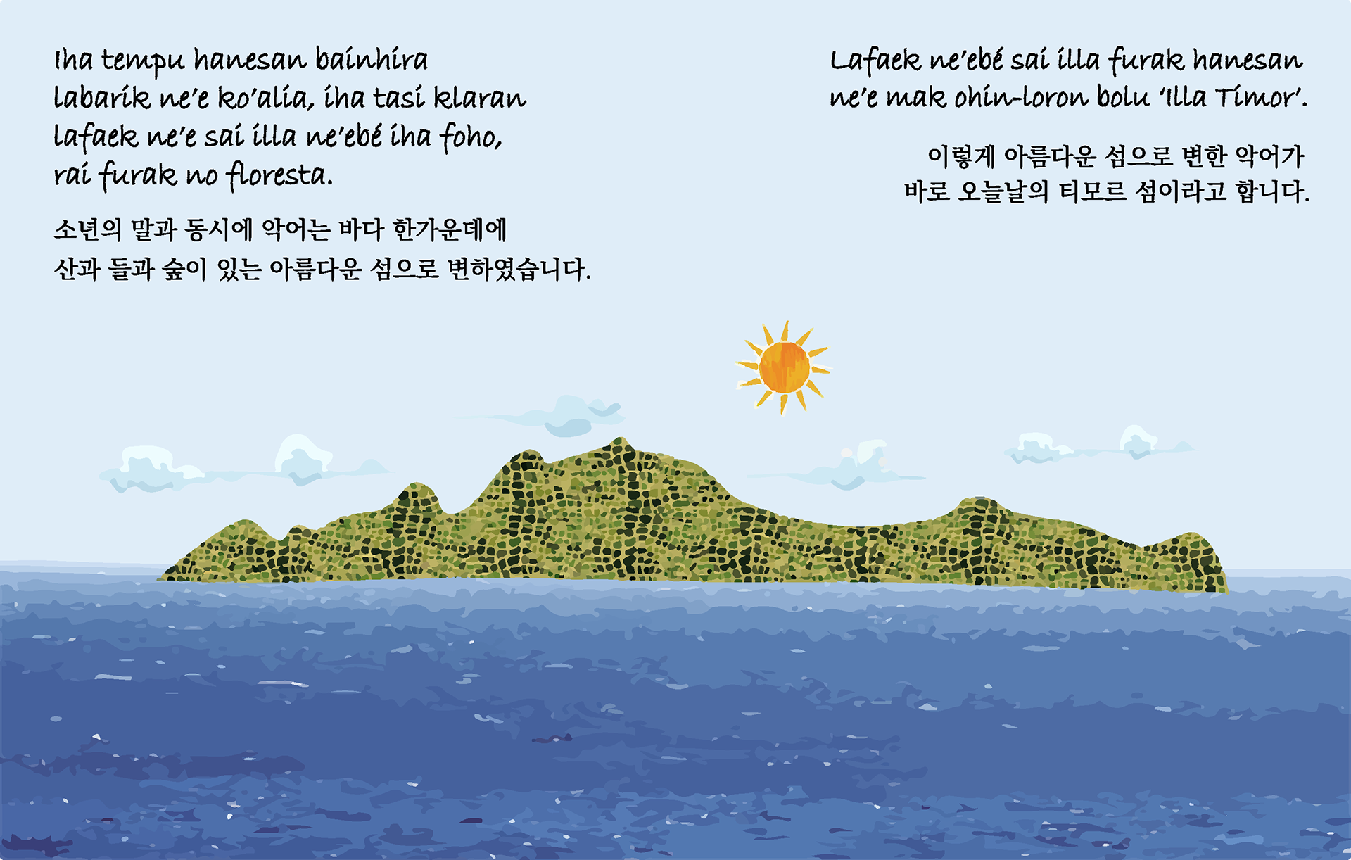 제주도청과 글로벌이너피스 동티모르를 위해 동화책을 만들었습니다.