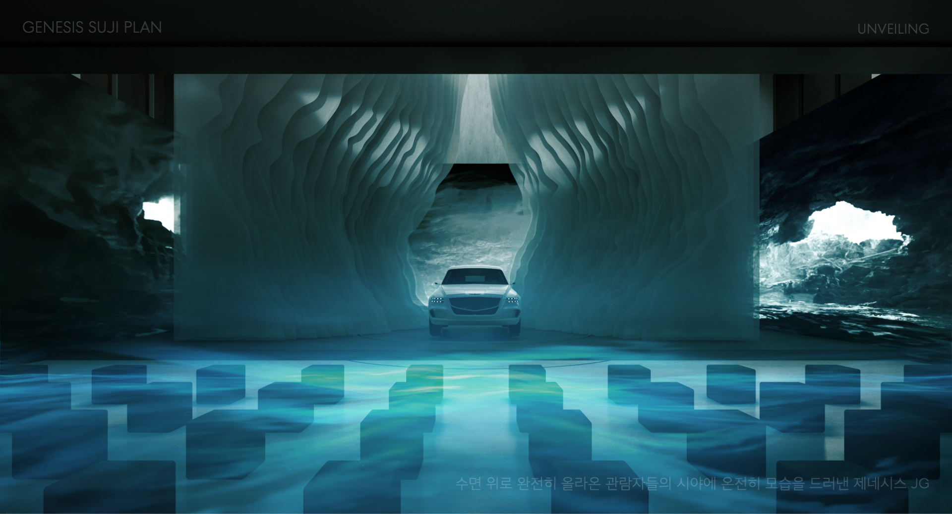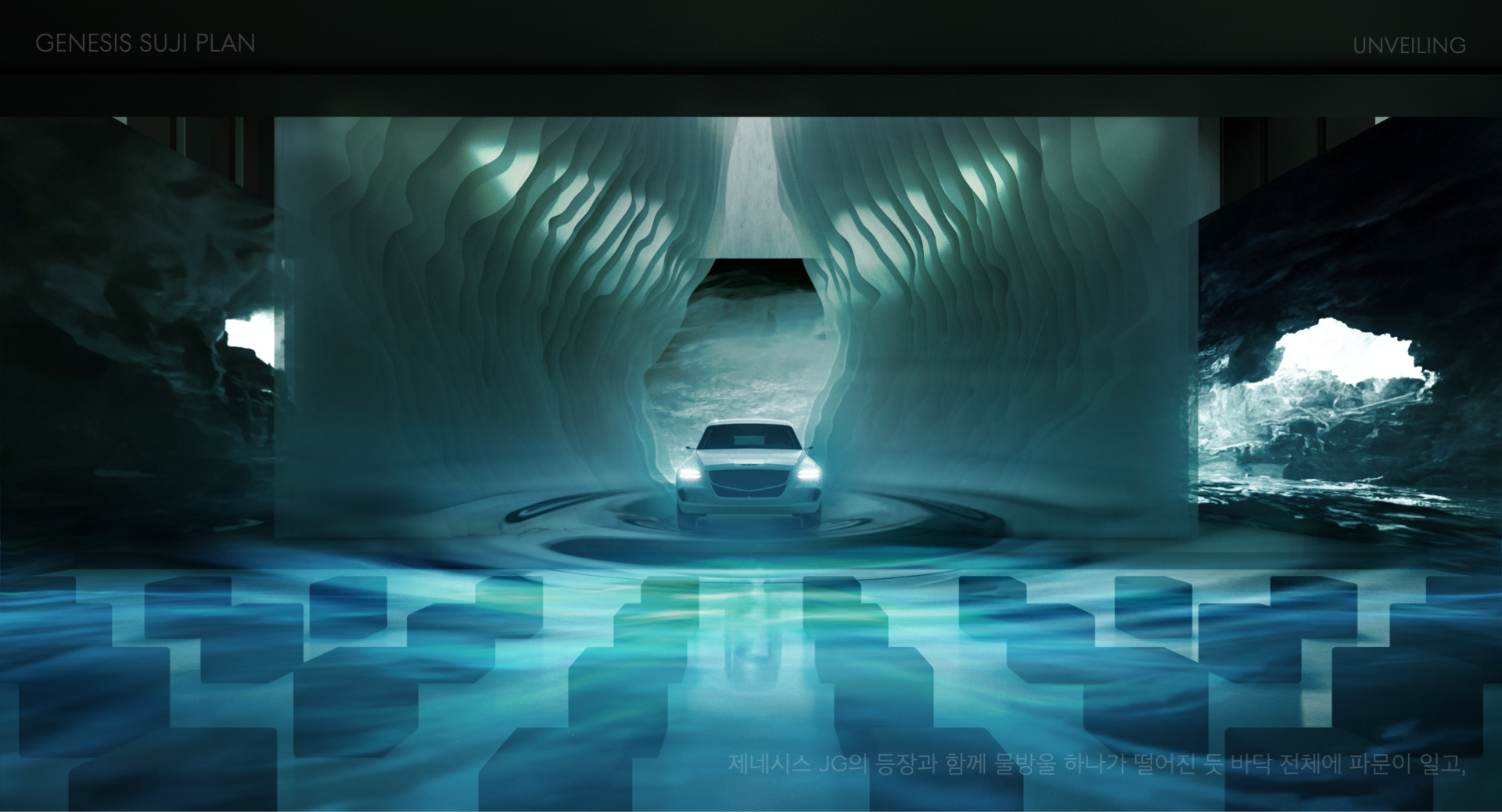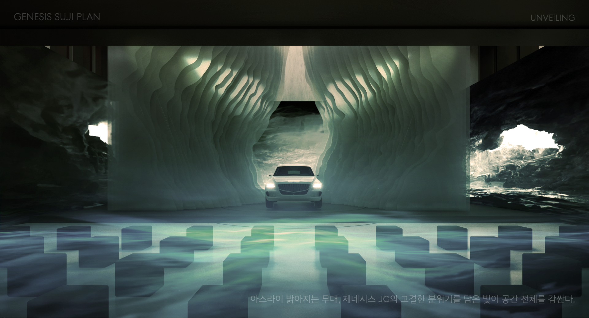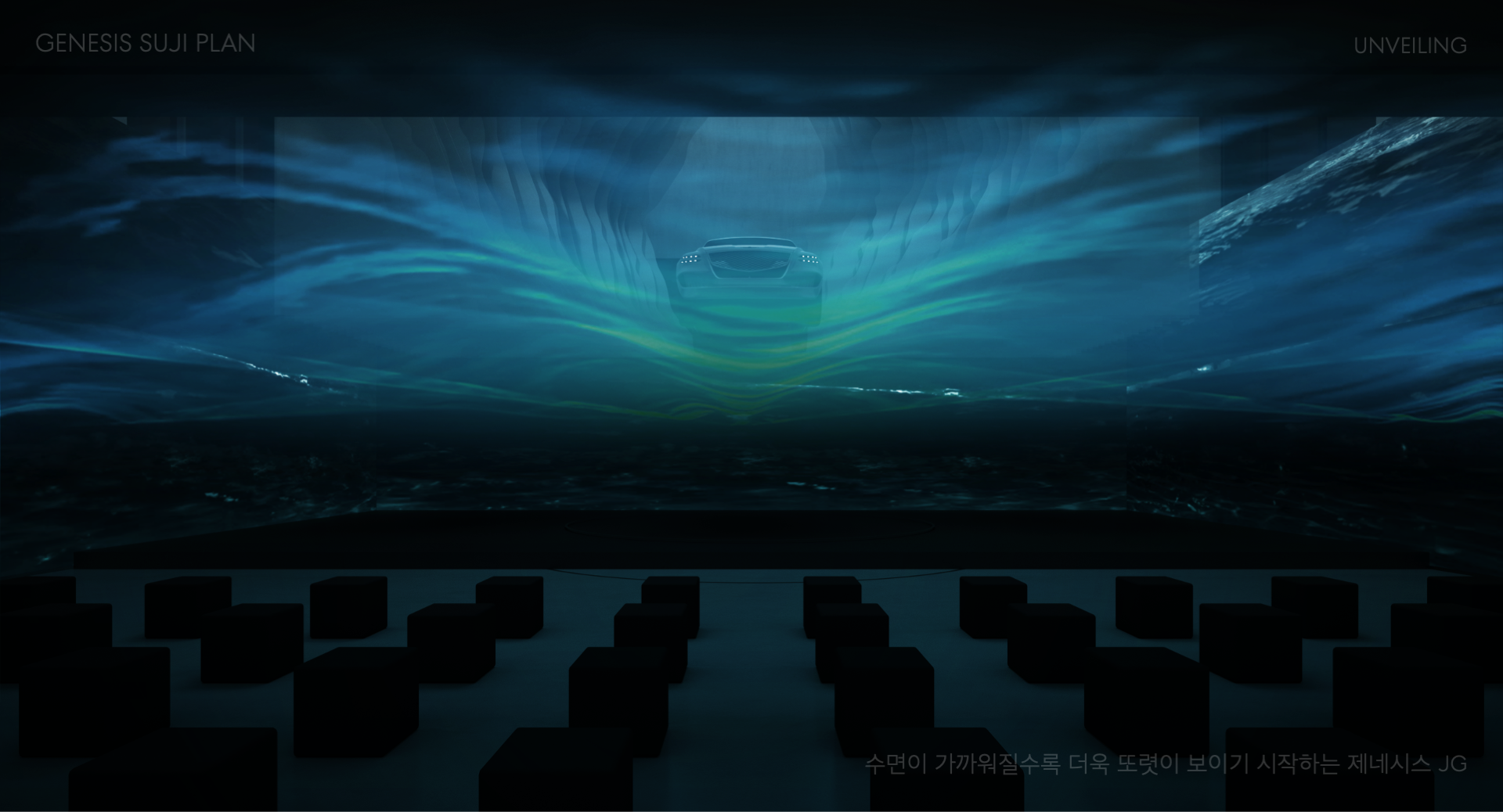 제네시스의 컨셉카 JG의 브랜드 런칭을 위한 공간 디자인, 언베일링 행사 비주얼 기획을 진행하였습니다.