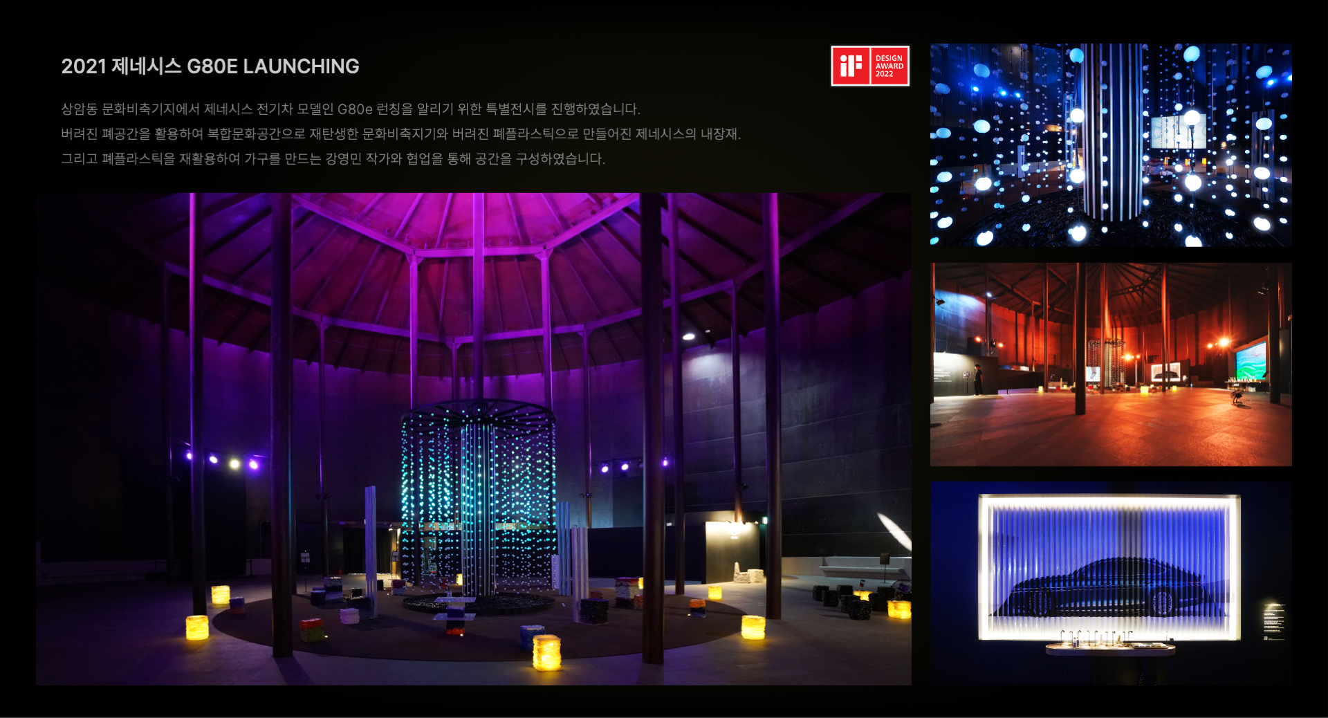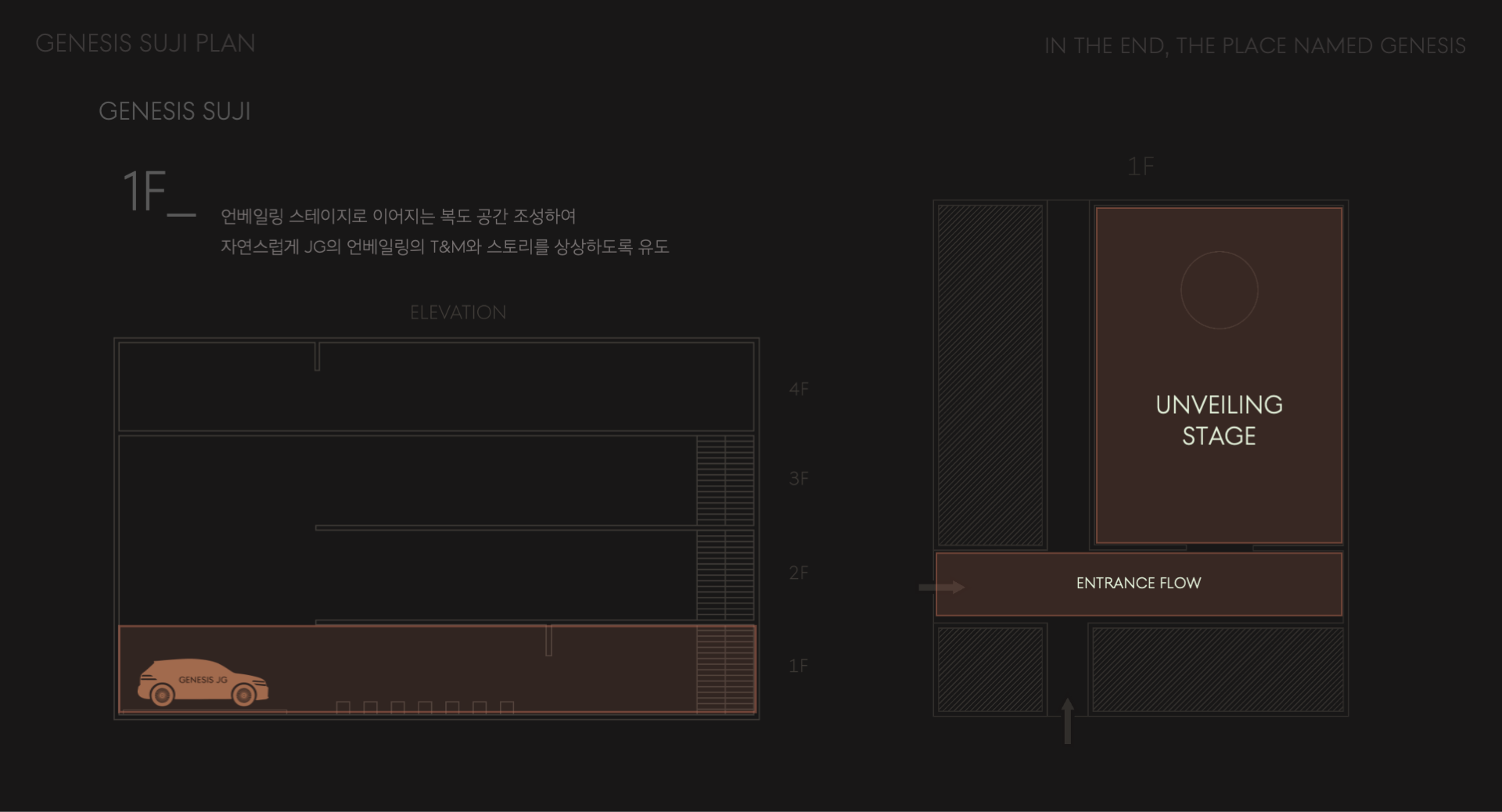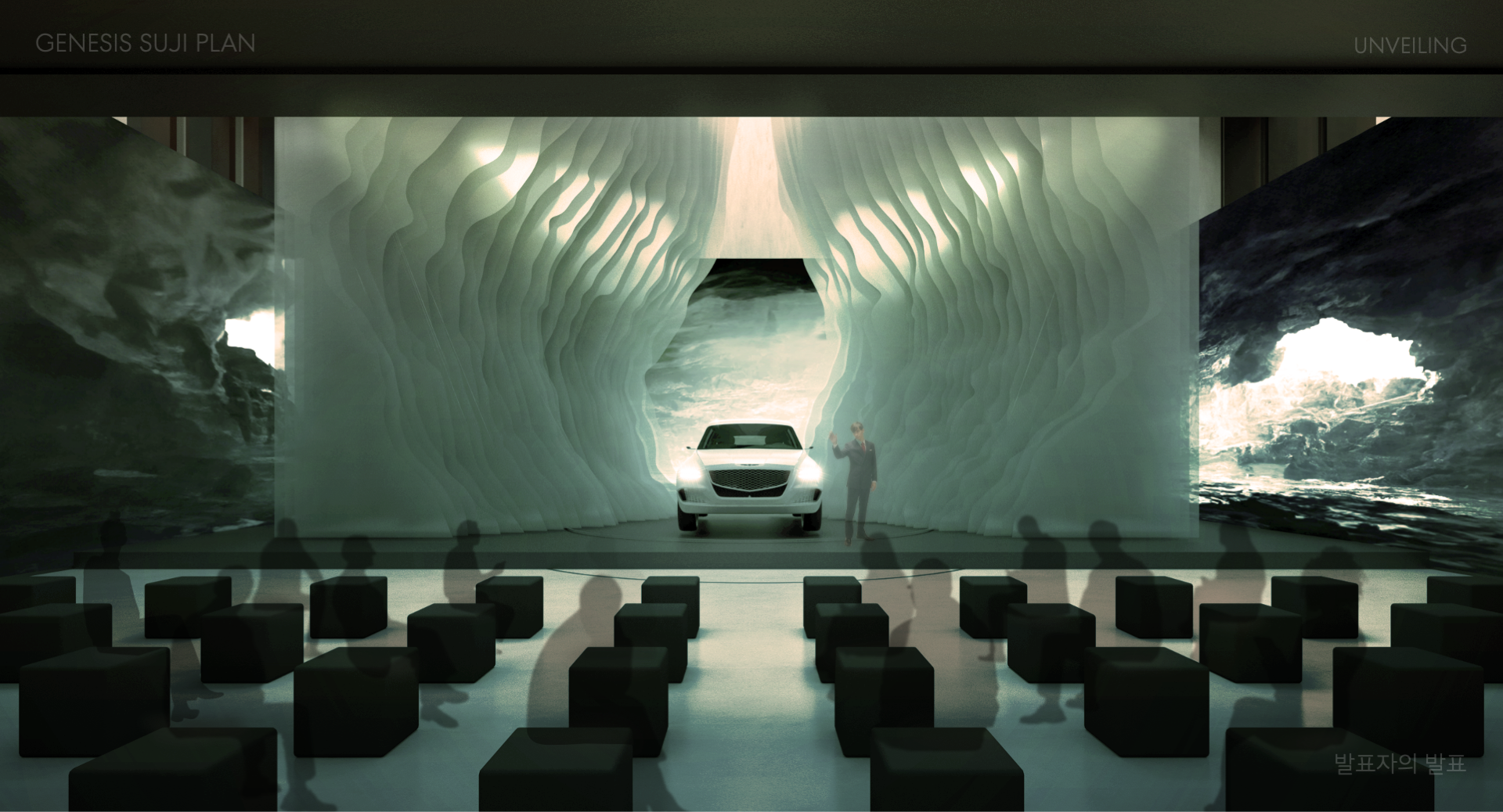 제네시스의 컨셉카 JG의 브랜드 런칭을 위한 공간 디자인, 언베일링 행사 비주얼 기획을 진행하였습니다.