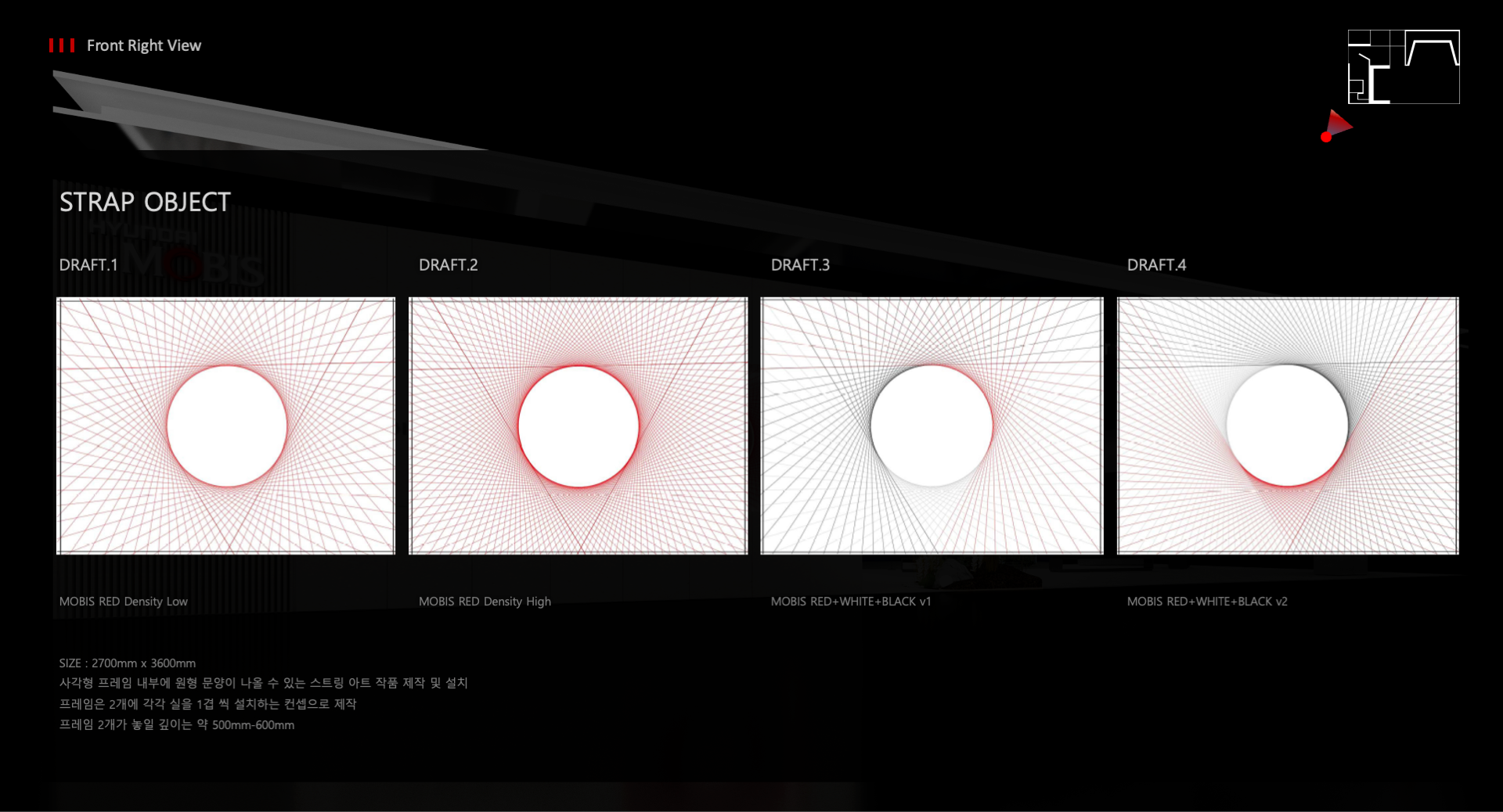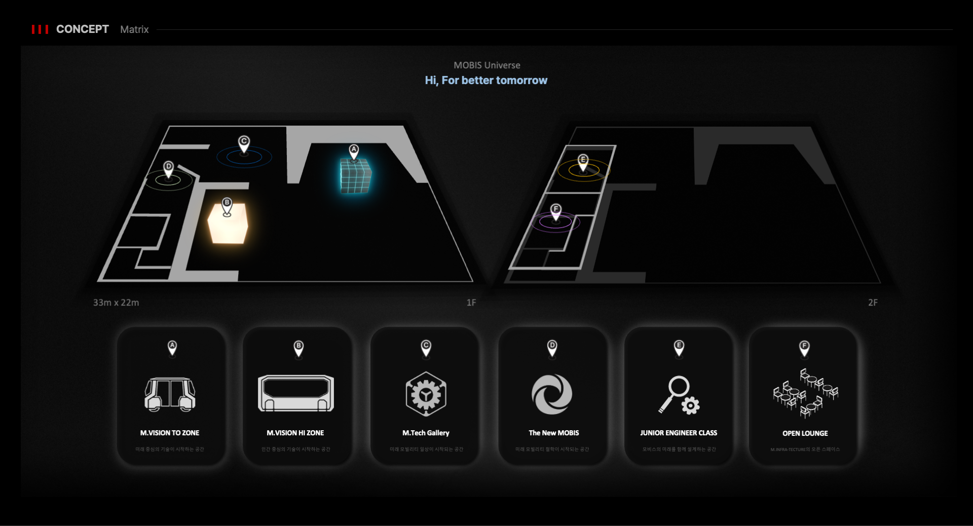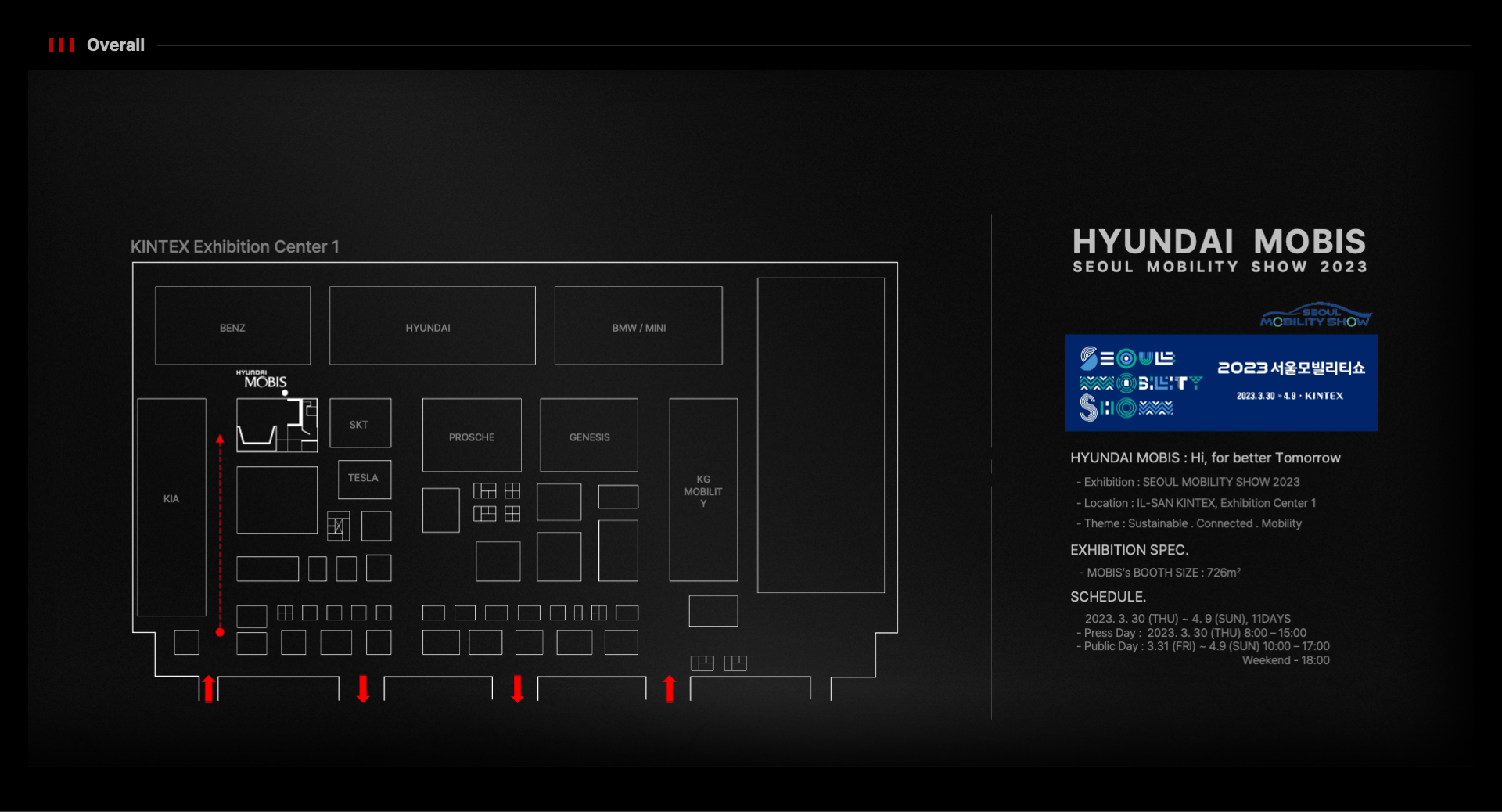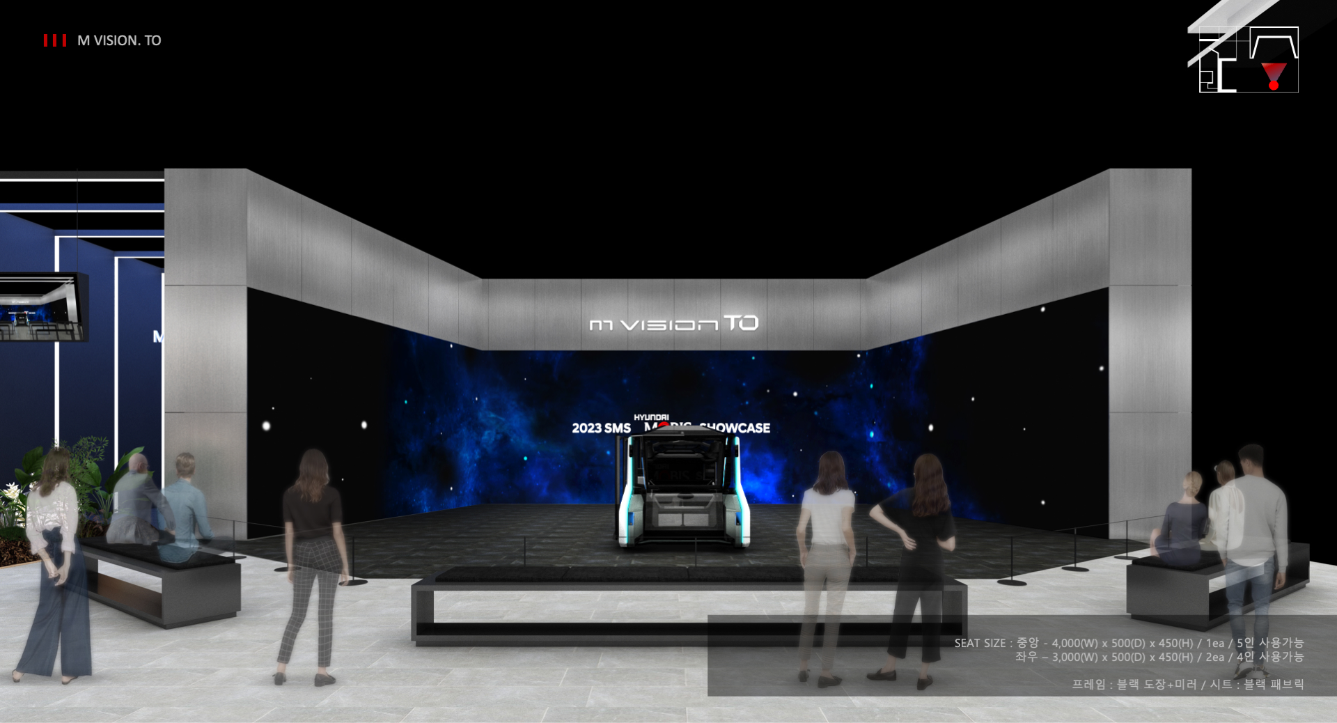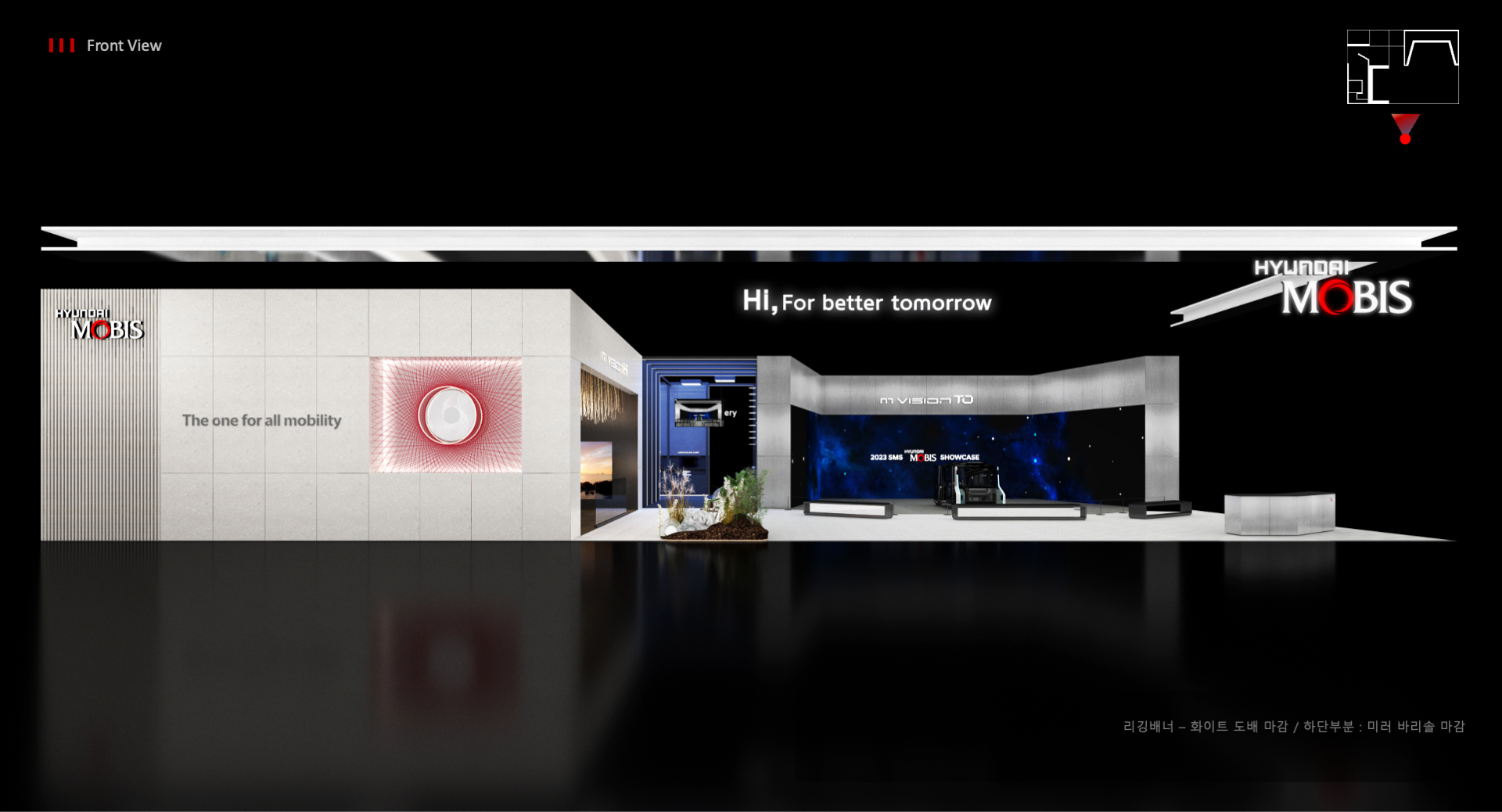 2023년 서울모빌리티쇼 현대모비스관 디자인을 위한 입찰제안 프로젝트에 참여하여 제안서 기획 및 제작을 진행하였습니다. (입찰 및 실시진행 완료)