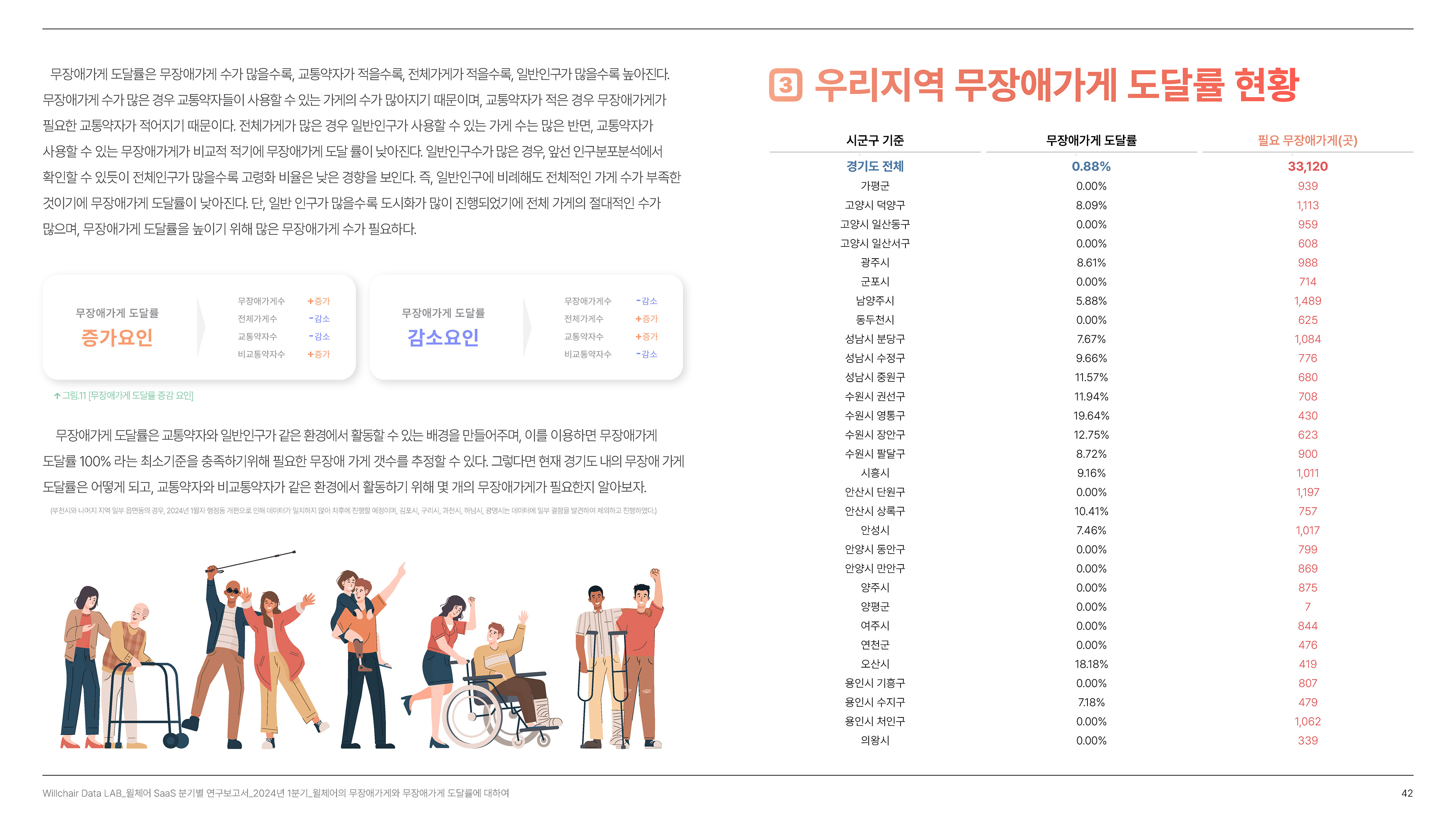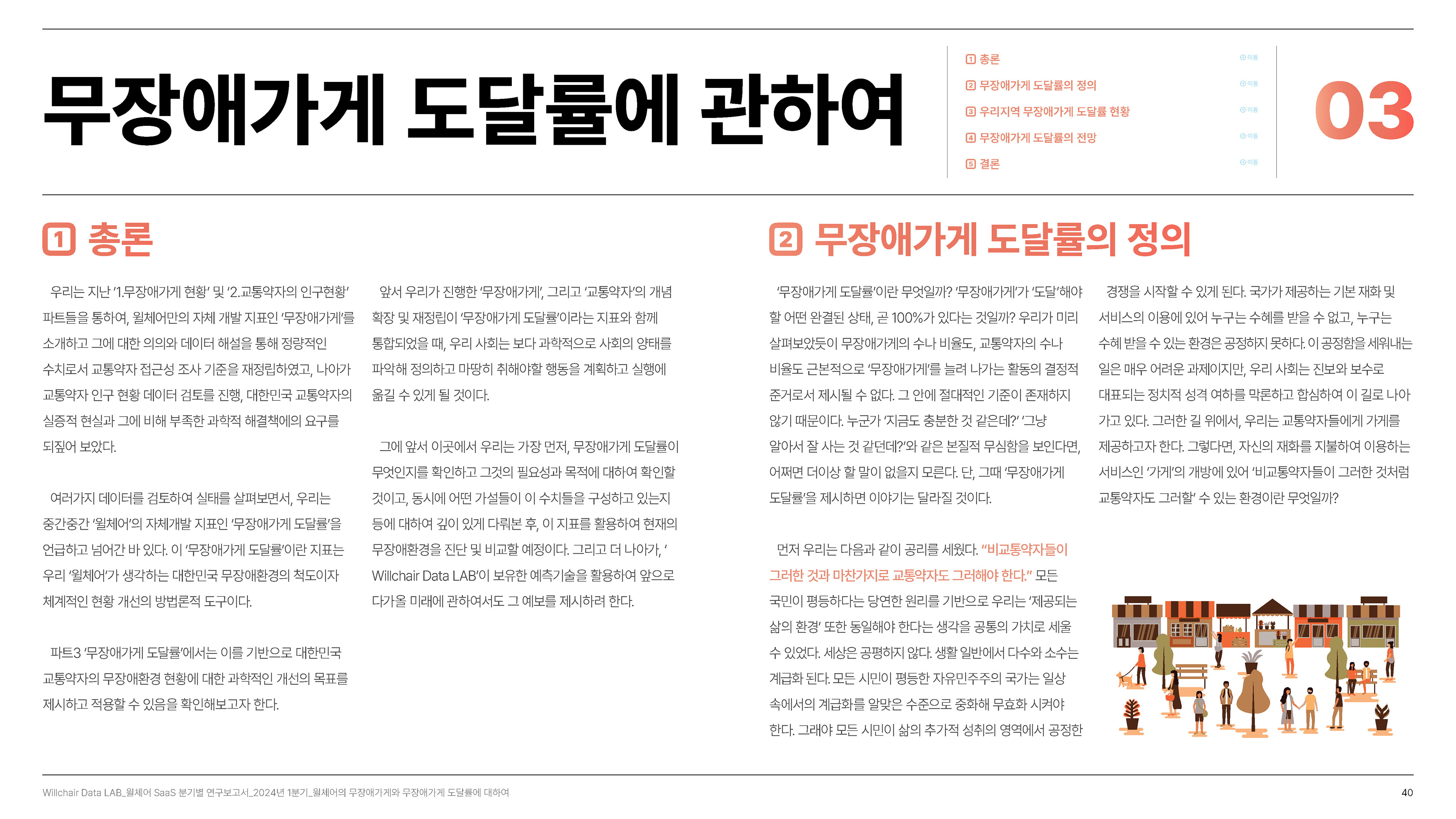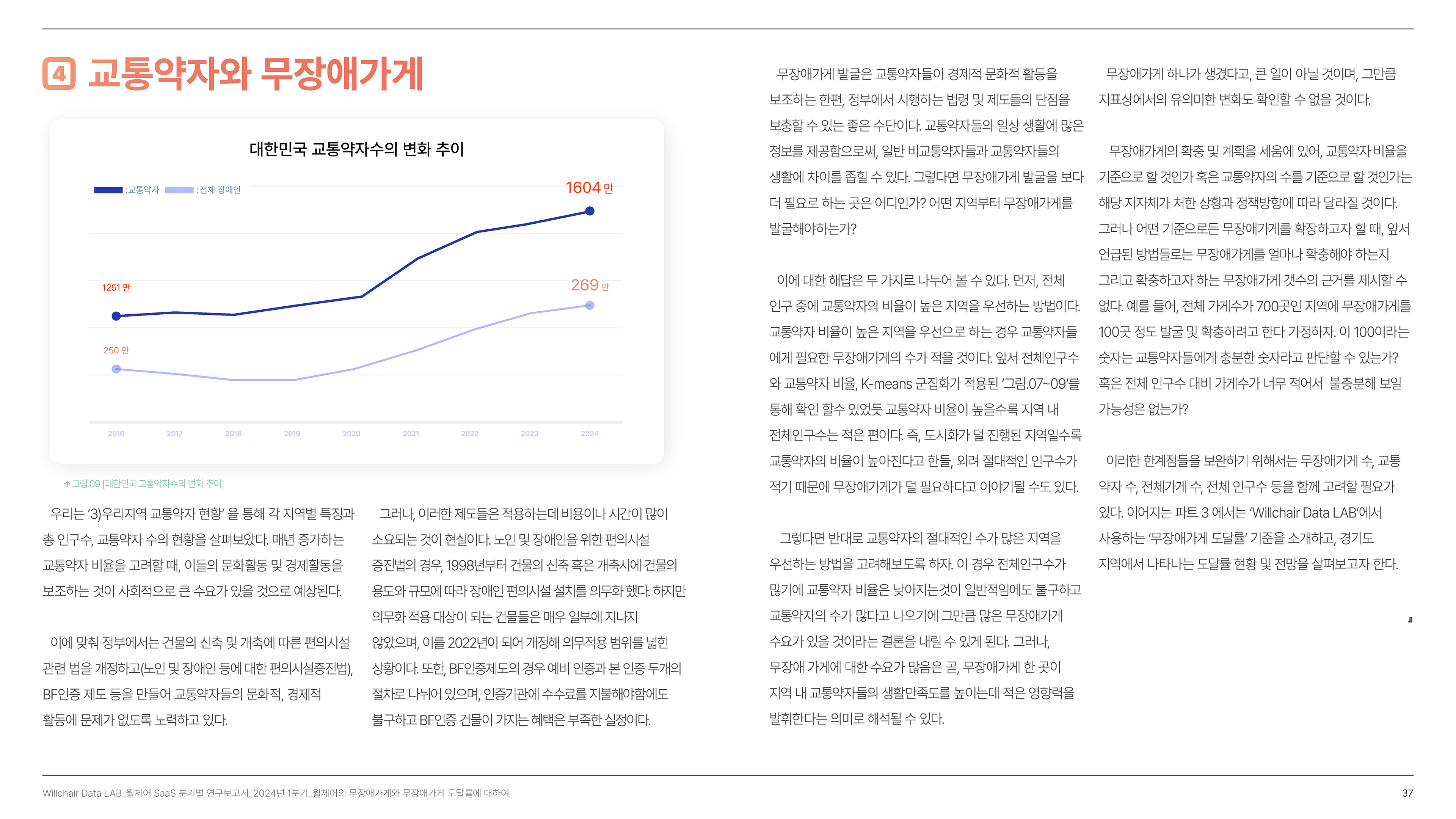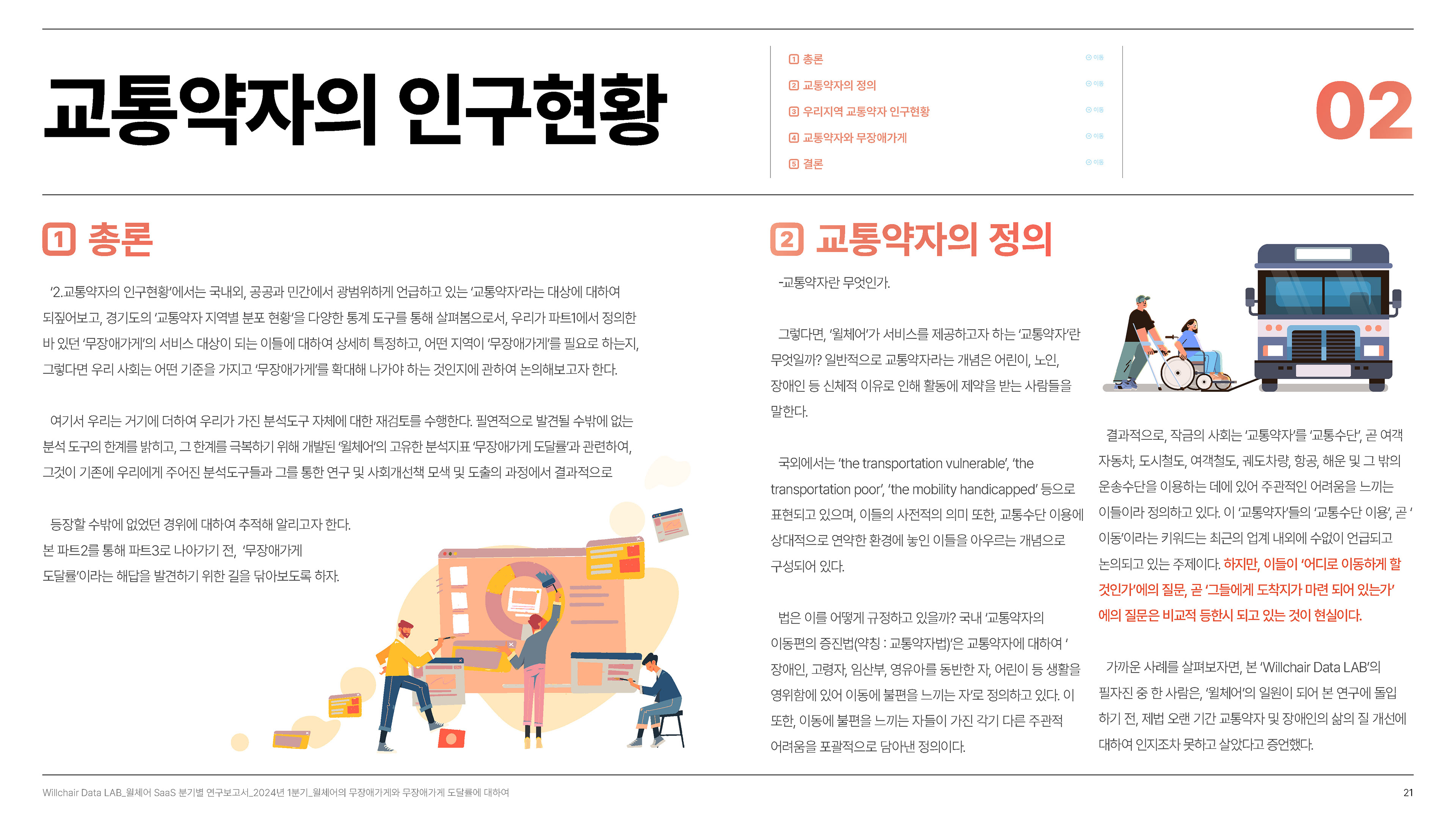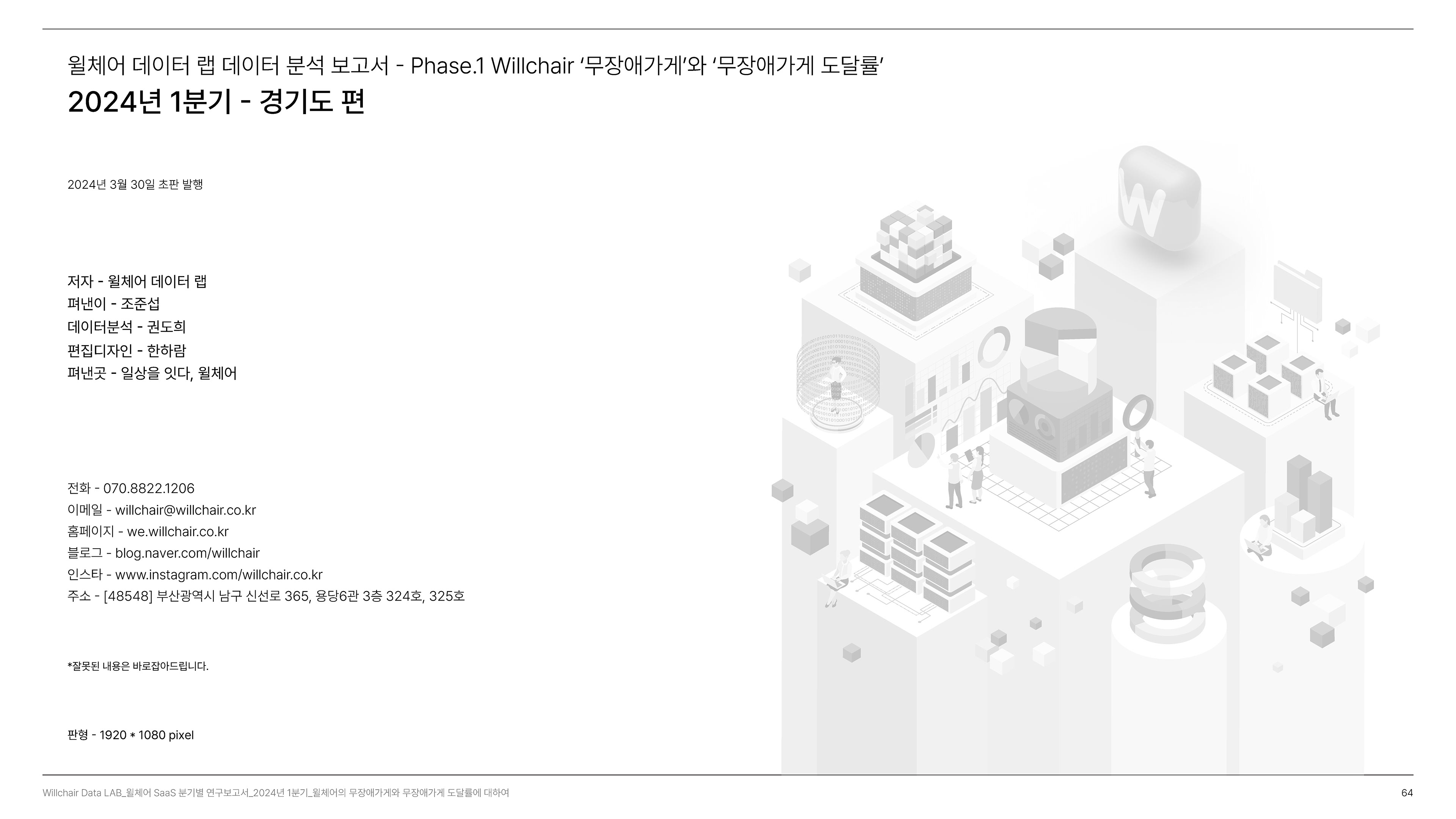 2024년 1분기의 연구성과를 담은 무장애 환경 데이터 분석 보고서를 기획 및 집필, 디자인하였습니다.