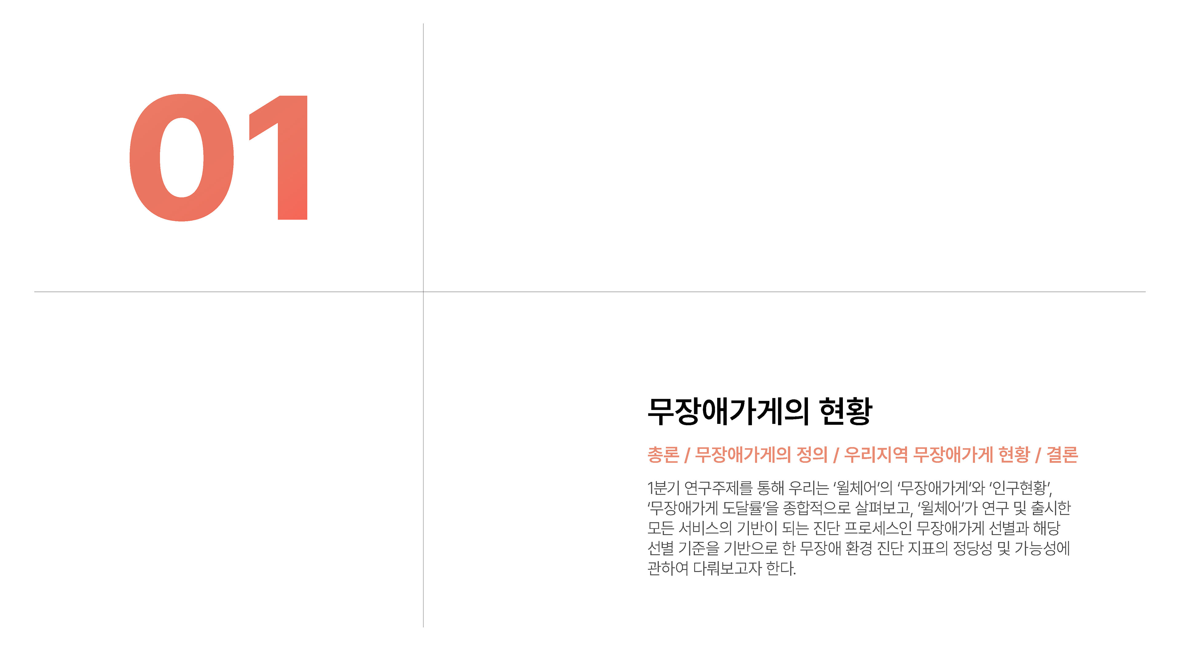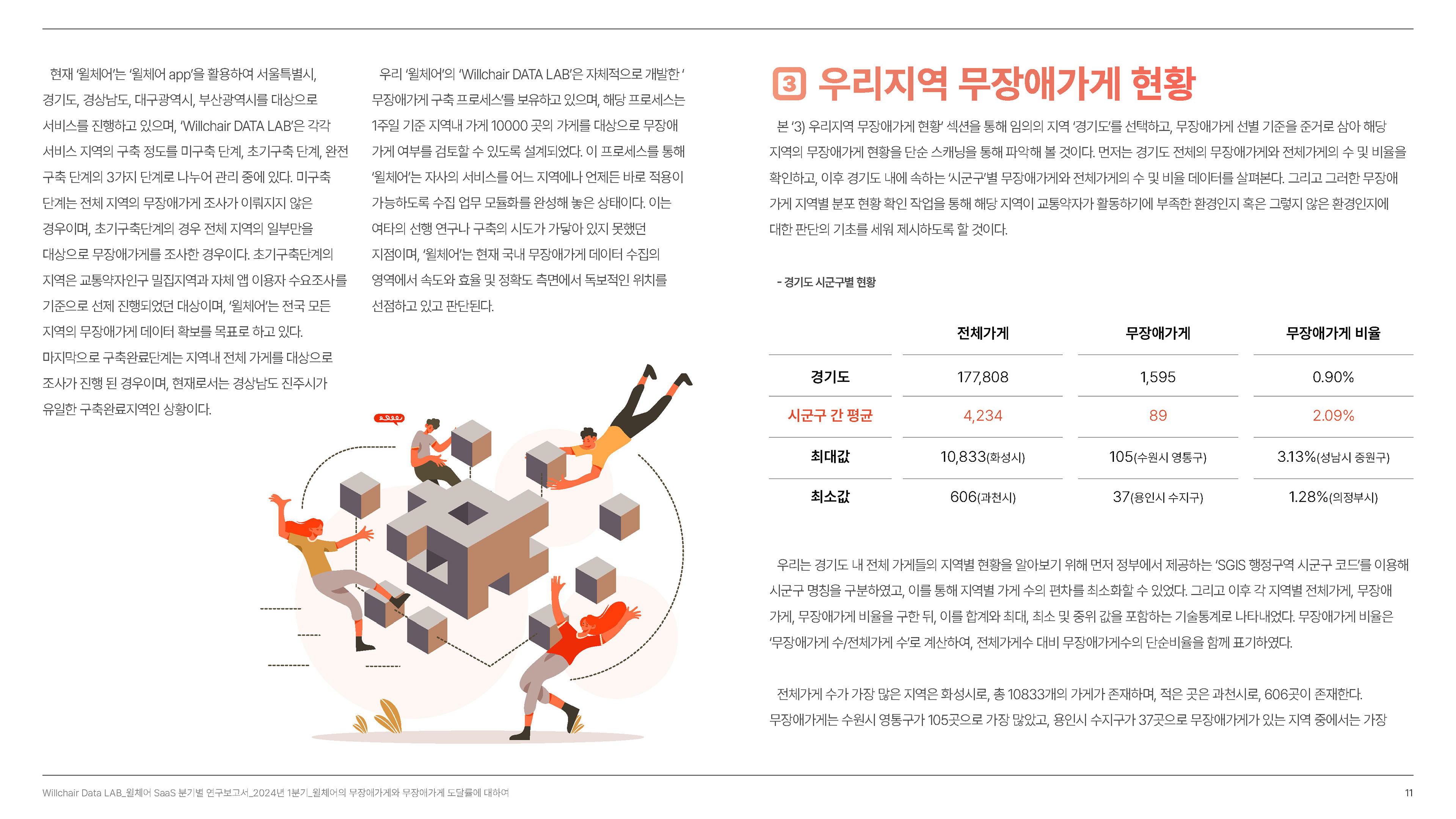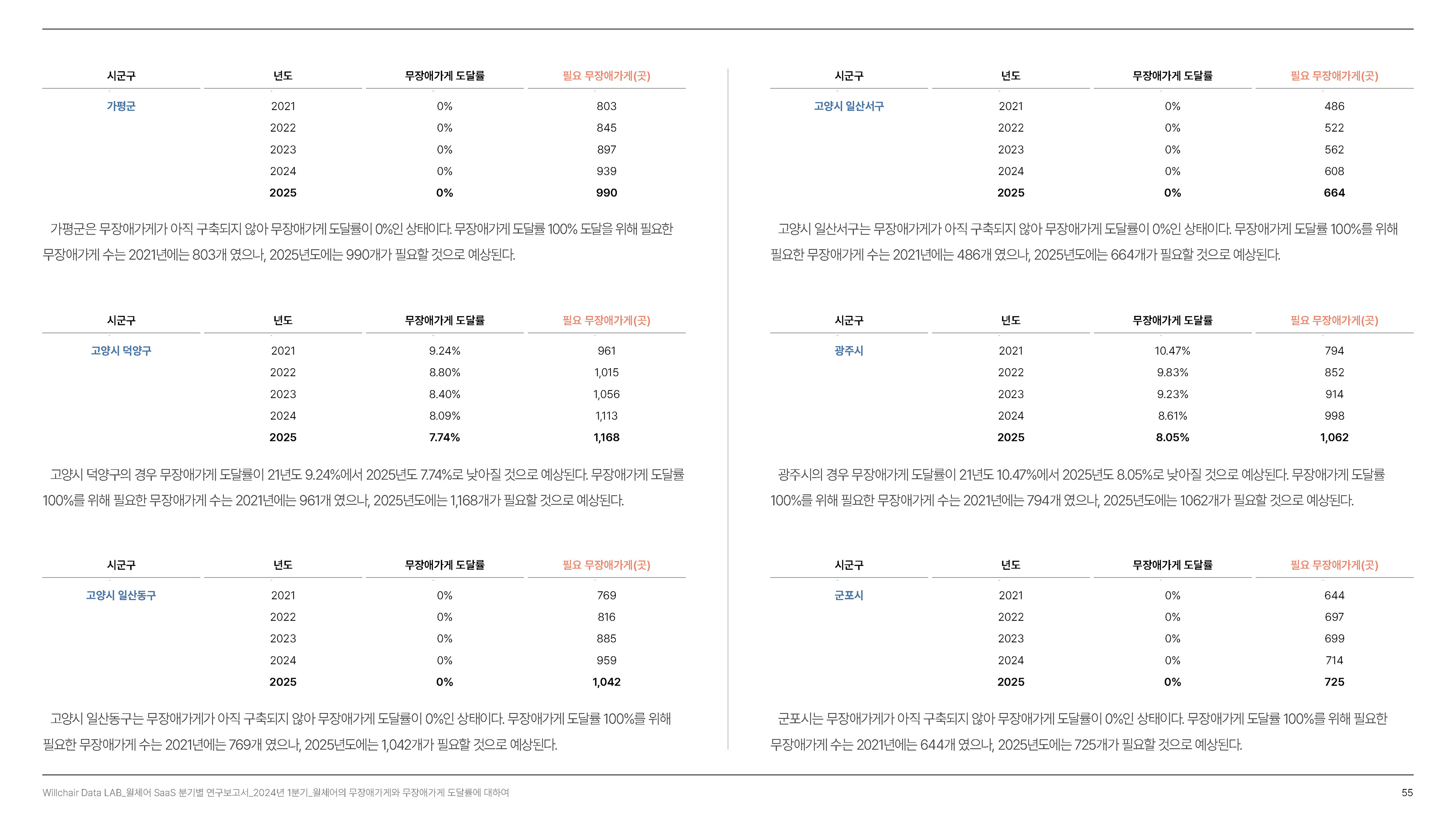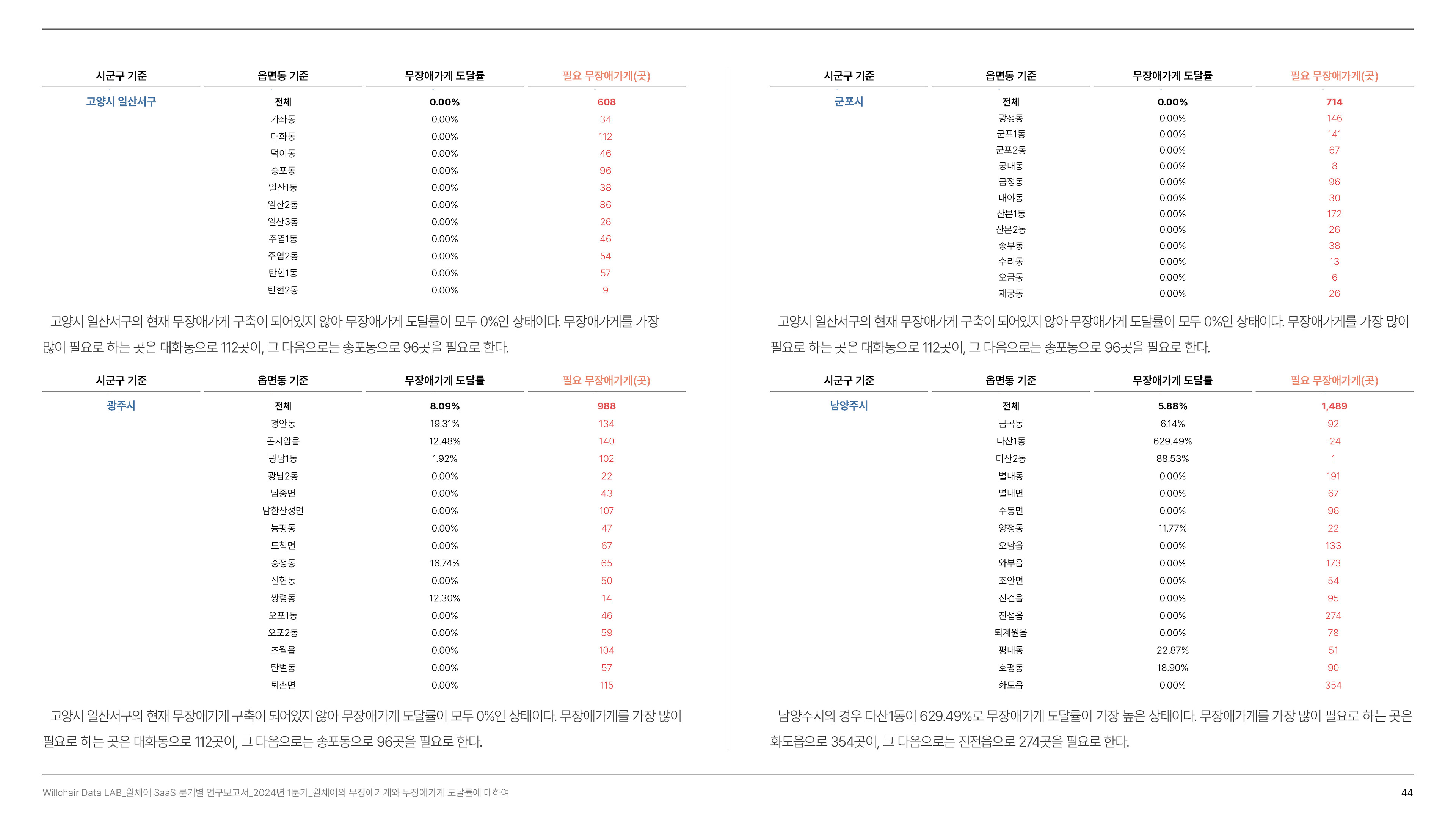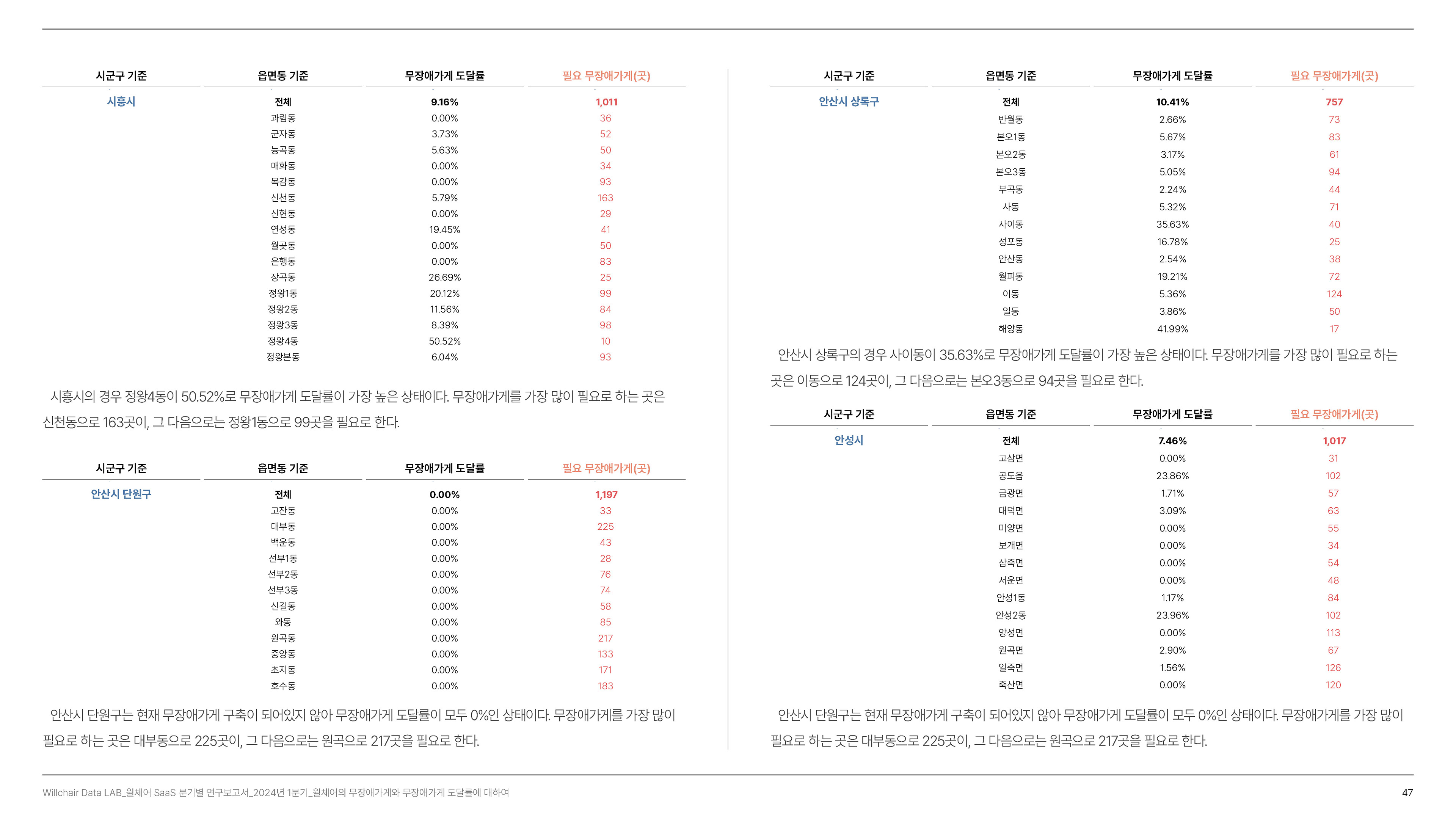 2024년 1분기의 연구성과를 담은 무장애 환경 데이터 분석 보고서를 기획 및 집필, 디자인하였습니다.