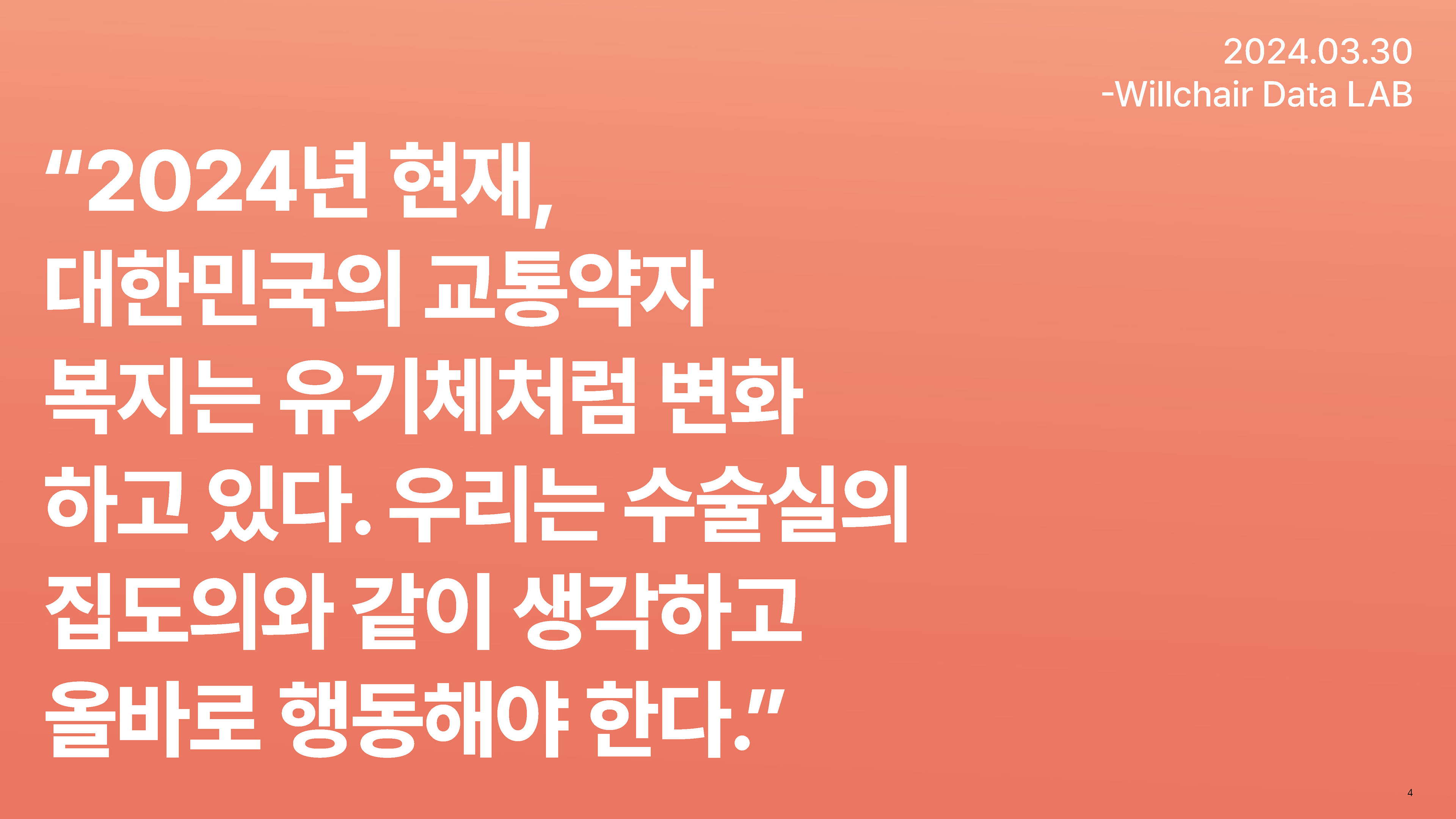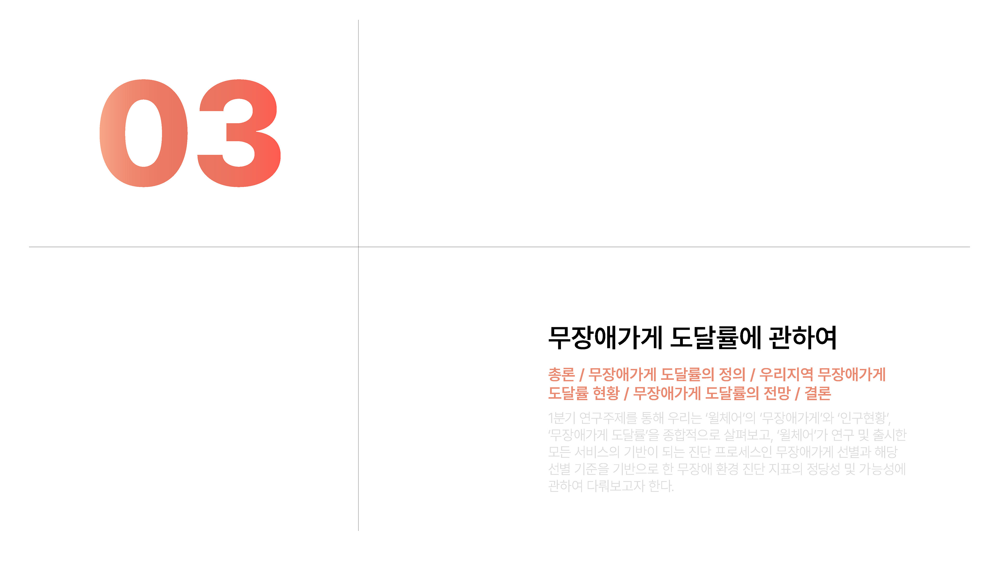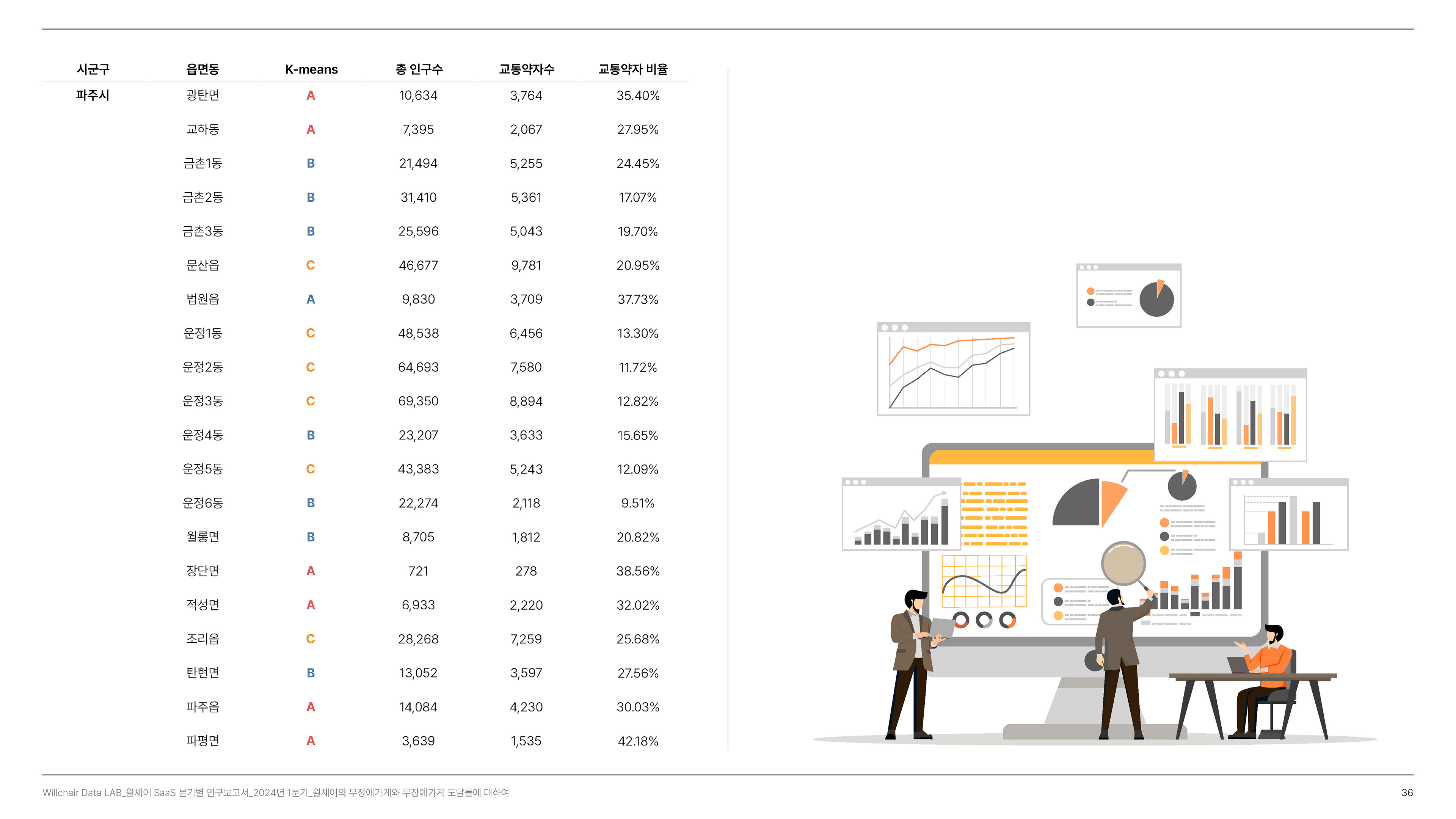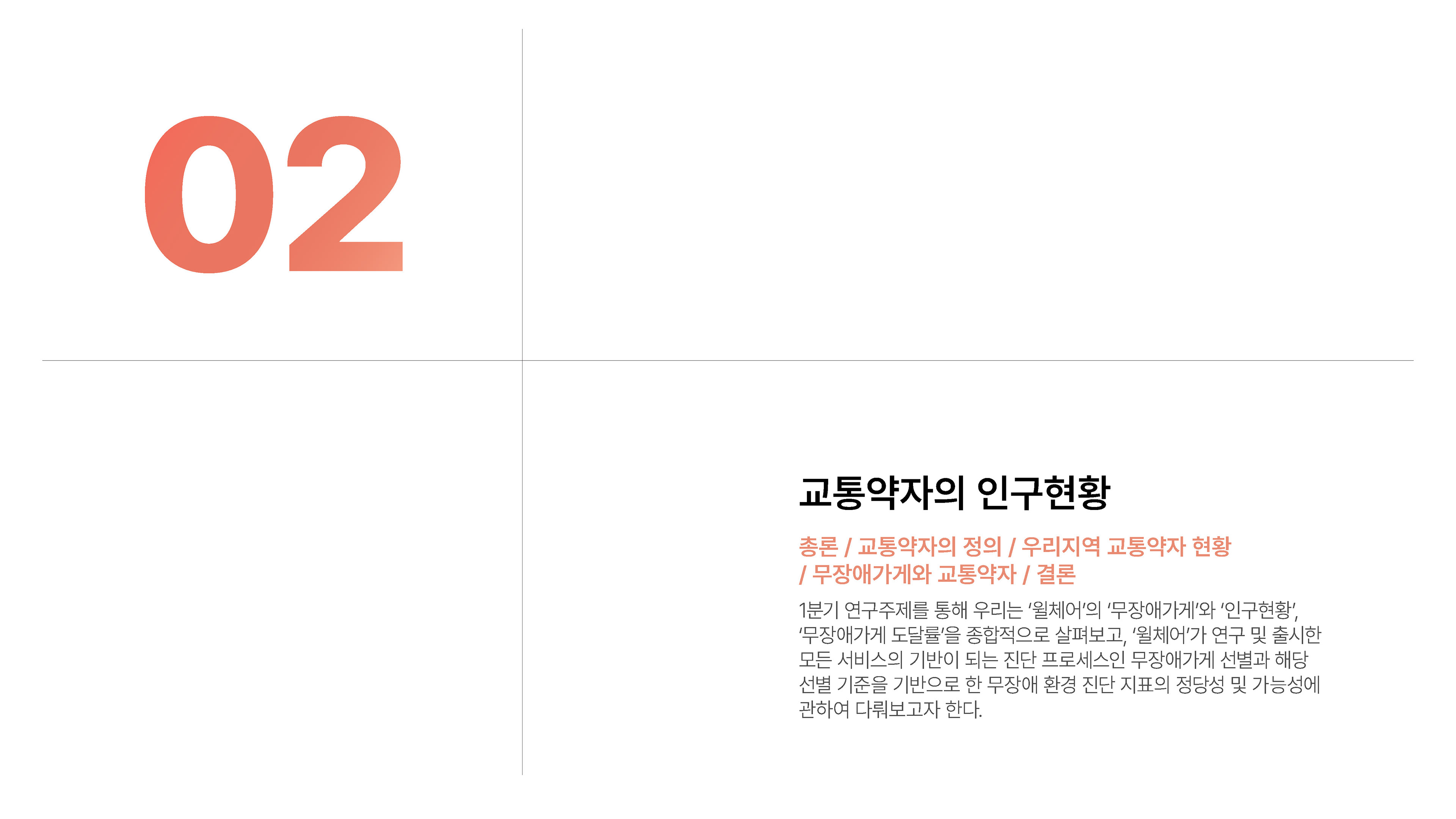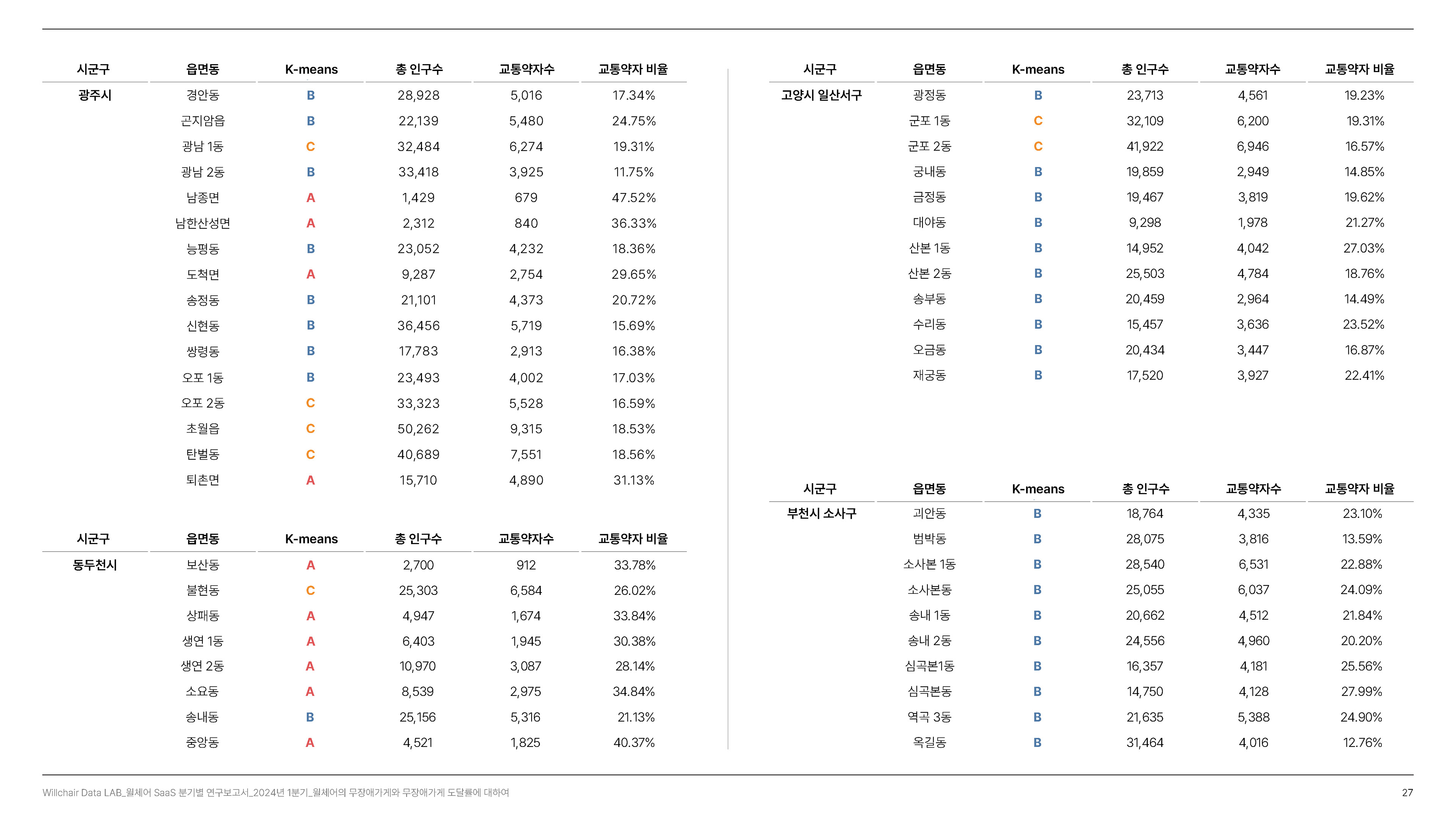 2024년 1분기의 연구성과를 담은 무장애 환경 데이터 분석 보고서를 기획 및 집필, 디자인하였습니다.
